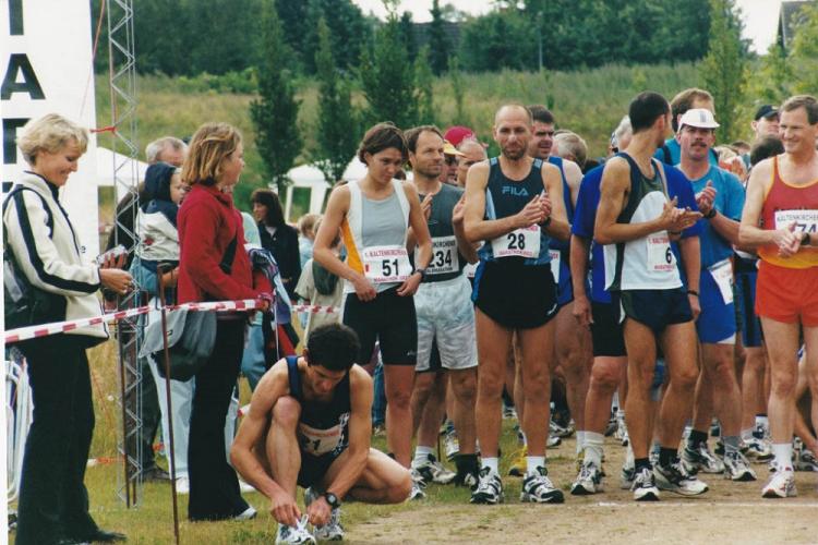 Zur großen Überraschung brachte die Post 195 Anmeldungen für die Premieren-Veranstaltung und so wurde am 23.06.2002 der 1. Kaltenkirchener Marathon und Halbmarathon veranstaltet, bei dem 159 Läufer über die Ziellinie liefen. Die Veranstaltung kam mit ihrem Gesamtkonzept ausgesprochen gut an. Drei Getränkestände pro 5,3 km Runde, die Verschickung von Ergebnisliste, Urkunde, kopiertem Zeitungsartikel und als „Bonbon“ bekam noch so gut wie jeder Läufer mindestens ein 20x30 großes von sich während des Laufes geschossenes Bild dazu. Während der „Quentsch“ alle Vorarbeit im Alleingang durchführte, standen ihm für die Laufveranstaltung zahlreiche Helfer des Kaltenkirchener Lauftreffs und weitere Sportbekannte zur Verfügung. Die Nacharbeit (Sortierung mehrerer hundert Fotos und Kopien, Verschickung der Unterlagen etc.) erledigte der „Quentsch“ mit seiner Frau Christiane.
