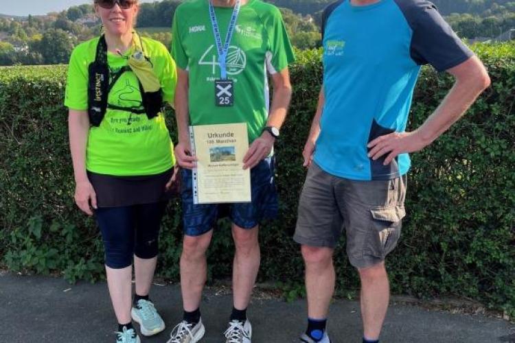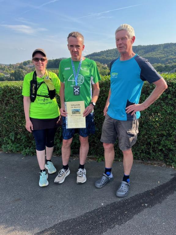 Nach Abklärung seiner Läufe mit dem Statistiker des 100 Marathon Club ist es nun amtlich: Bereits am 20. September 2025 lief Michael Kofferschläger aus Wegberg seinen 100. Marathon oder länger bei der 1. Etappe des "X 25 Schau-ins-Land-Weg Ultra" über 53 Kilometer von Bielefeld nach Georgsmarienhütte.