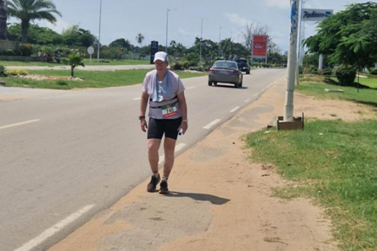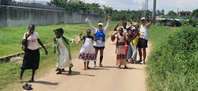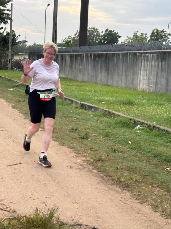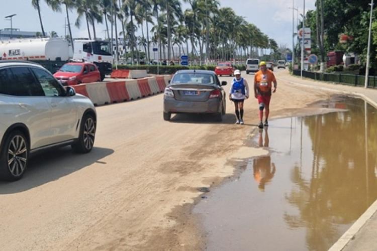 Am nächsten Morgen war durch die frühe Startzeit noch nicht zu viel Verkehr auf den Straßen, so dass die Läufer in den ersten Stunden relativ „ungestört“ laufen konnten. Später am Tag nahm der Verkehr zu, so dass mehr Aufmerksamkeit geboten war, sich zwischen Fußgängern, Rad- und Mopedfahrern, Autos und LKWs zu manövrieren. Durch die nun höheren Temperaturen wurde die Laufgeschwindigkeit automatisch reduziert, allerdings nahm durch die Erschöpfung auch die Aufmerksamkeit ab. Außerdem trocknete der Sand auf den Wegen und der Staub auf den Straßen, dass man rechtzeitig das Mundtuch hochzog und die Sonnenbrille aufsetzte, um nicht den „Dreck der Straße“ in Mund, Nase und Augen zu bekommen. Die Leute ließen uns zufrieden, die Straßenverkäufer verdienten an dem ein oder anderen Spontankauf eines Läufers, der sich mit einem Kaltgetränk motivieren wollte. Nach 5 ½ bis 9 Stunden war es für alle vorbei – ausgestiegen ist keiner. Durch die kurzen 1,5 Kilometer-Runden gab es diverse Begegnungen, die immer wieder für einen kurzen Plausch oder Anfeuerung genutzt wurden.