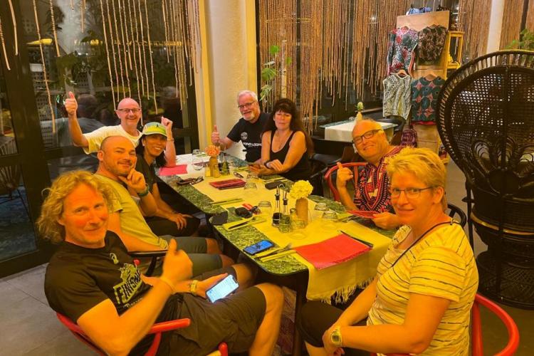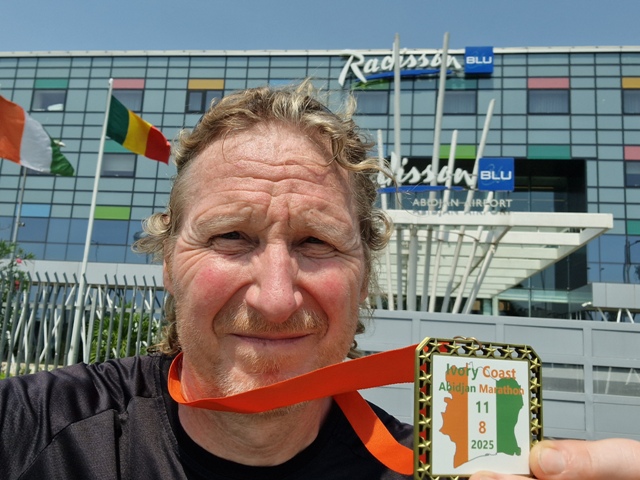 Per Whatsapp rief die Veranstalterin vom Teheran Park Marathon auf, an eine Reise nach Äquatorial-Guinea und Nigeria noch Marathonläufe in der Elfenbeinküste und dem Senegal folgen zu lassen. Da wir die ersten beiden und das letzte Land schon kennen, haben wir uns nur für die Elfenbeinküste angemeldet. Unsere Clubmitglieder Thomas G. und Dieter E. wollten ebenfalls dabei sein. So trafen wir uns also an einem Donnerstag Mittag auf dem Pariser Flughafen, um gemeinsam nach Abidjan, der früheren Hauptstadt der Elfenbeinküste zu fliegen. Immer noch die größte Stadt des Landes und am Golf von Guinea gelegen. Im Flieger trafen wir auf den Franzosen Didier, mit dem wir schon so manchen exotischen Marathon gelaufen sind. Nachdem wir die Immigration erledigt hatten, ging es mit dem Hotelbus ins Hotel, um schnell noch ein Abendessen im Restaurant zu genießen.
