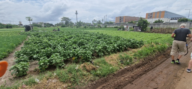 Nach üppigem Frühstück gingen wir zu sechst (inzwischen war der Österreicher Anton dazu gestoßen) die Strecke ab, die durch Felder und über Sandstraßen führte, mit reichlich LKWs, die Firmen oder Baustellen belieferten. Als die Strecke etwas geändert wurde und dann festgelegt war, fuhren wir mit Taxis in die Innenstadt, um noch etwas Sightseeing zu machen und uns mit (speziellen) Getränken für den Lauf einzudecken. Außerdem Brot und Bananen fürs Frühstück, denn der Start sollte um 6:00 Uhr stattfinden, um der Wärme wenigstens etwas zu entgehen. Da um kurz nach 6 Uhr Sonnenaufgang ist, sollte es dann bereits ausreichend hell sein. Nach dem Briefing im Veranstaltungshotel aßen wir in großer Runde zu Abend, tauschten einige Lauferinnerungen und neue Pläne aus und gingen alle früh ins Bett.