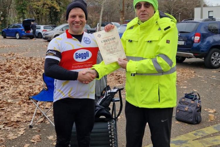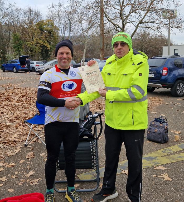"Am Sonntag, 23.11.2025 bekam ich die Gelegenheit, meinen 100. Marathon beim Rössle RunMob in Stuttgart absolvieren zu dürfen. Die anspruchsvolle Strecke bei arktischen Temperaturen war recht kurzweilig, da dieser Lauf wie ein kleines Familientreffen der Läufer aus und um Stuttgart ist. Besonders gefreut hat mich, die Urkunde von dem 100MC Urgestein KLaus Neumann empfangen zu dürfen.