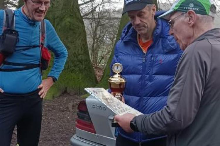 Gerd Junker, 2. Vorsitzender des 100MC, ehrte im Anschluss an den 400. Marathon den Jubilar durch Verlesen der Urkunde, Jobst spendierte einen großen Pokal und vom Jubilar gab es für die anwesenden 16 LäuferInnen Käseschnecken, Lebkuchen und Weizenbier. Ein gelungenes Jubiläum, wenngleich auch die Meisten es ob des feuchten Wetters und der einstelligen Temperaturen nicht allzu lange ausgehalten haben. ;)