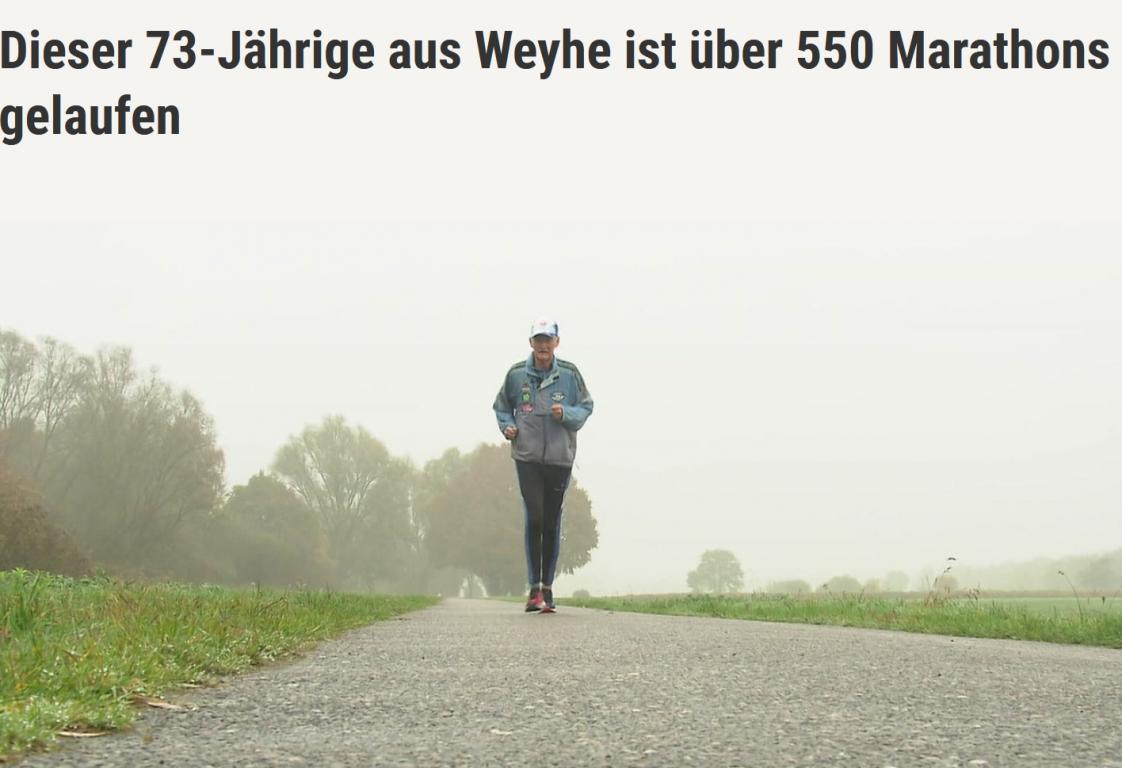 "Karl-Wolfgang Baumgarten hat schon 553 Marathon- und Ultraläufe hinter sich. Mit dem Laufen aufzuhören kommt für den 73-Jährigen nicht infrage."
