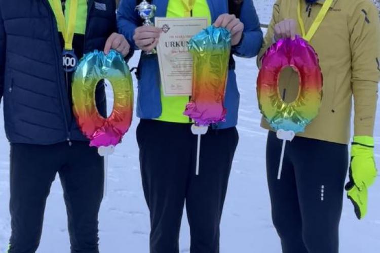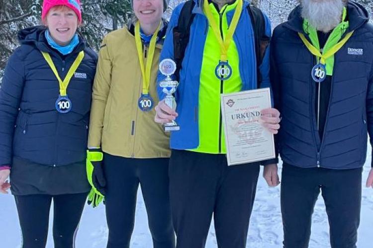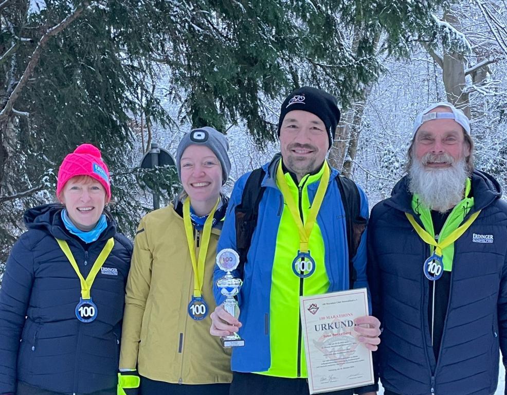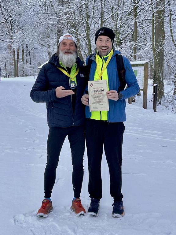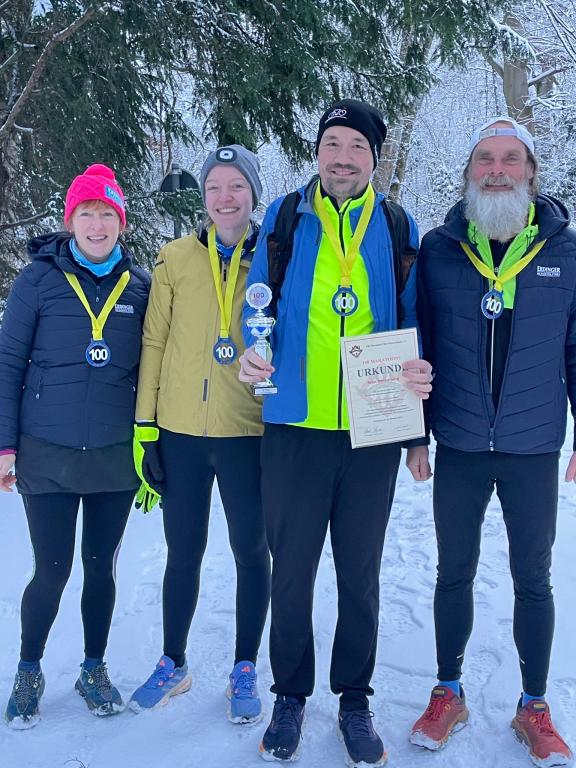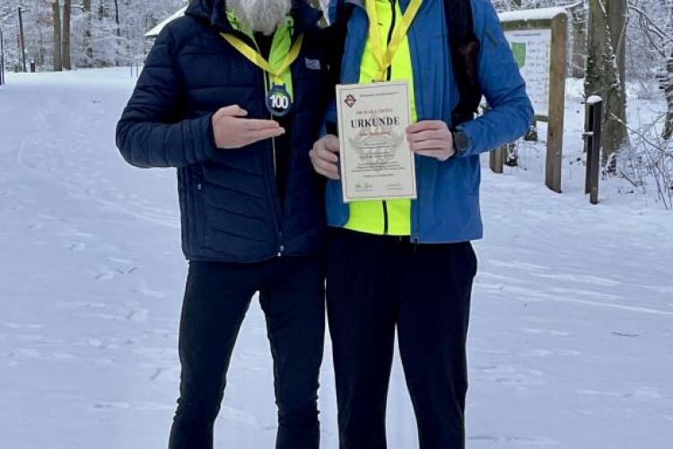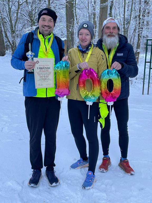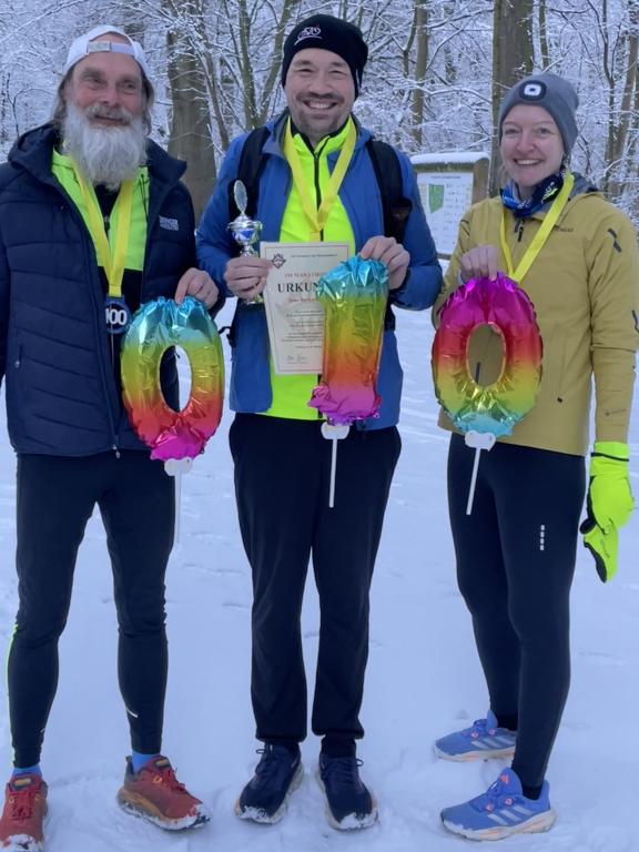 Sven wollte an seinem Jubiläumstag kein großes Trara und entschied sich erst ein paar Tage vorher für die Festlegung seiner Nummer 100. Anfang Januar 2026 wurde nun die Foto-Session im Schnee inkl. Urkundenübergabe in Bremen nachgeholt.