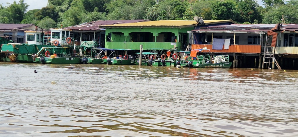 Mit Royal Brunei flogen wir weiter ins Sultanat Brunei: ein sehr angenehmer Flug mit sehr entspanntem Personal und Mitreisenden. Am Flughafen von Bandar Seri Begawan hatten wir ausreichend Zeit, wechselten Hong Kong Dollar in Brunei Dollar, erwarben eine örtliche SIM-Karte und suchten bereits die ersten Souvenirs aus. Mit dem Taxi erreichten wir unser Hotel und der Fahrer empfahl uns einige Sehenswürdigkeiten. Vom Hotel liefen wir knapp 15 Minuten zum Ufer und aßen Abendbrot, versorgten uns mit Getränken und genossen den nächtlichen Blick auf das Water Village. Ein komplett auf Betonpfählen errichteter Stadtteil für ca. 10.000 Bewohner, mit eigenen Schulen, Stromversorgung, Wasserrohren, Feuerwehr, Polizei und Moschee. Das war neu für uns. Das ist Südostasien!