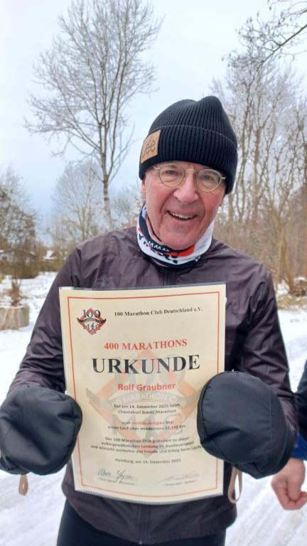 100MC Mitglied Rolf Graubner lief am Sonntag, 14. Dezember 2025 zum 400. Mal über mindestens 42,195 Kilometer.