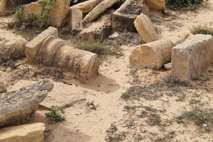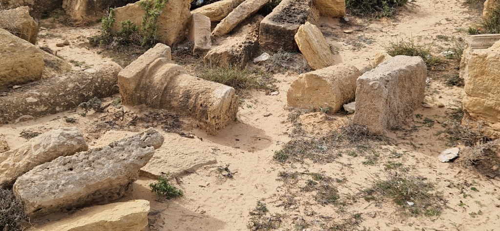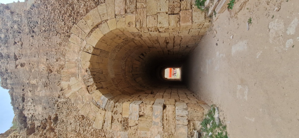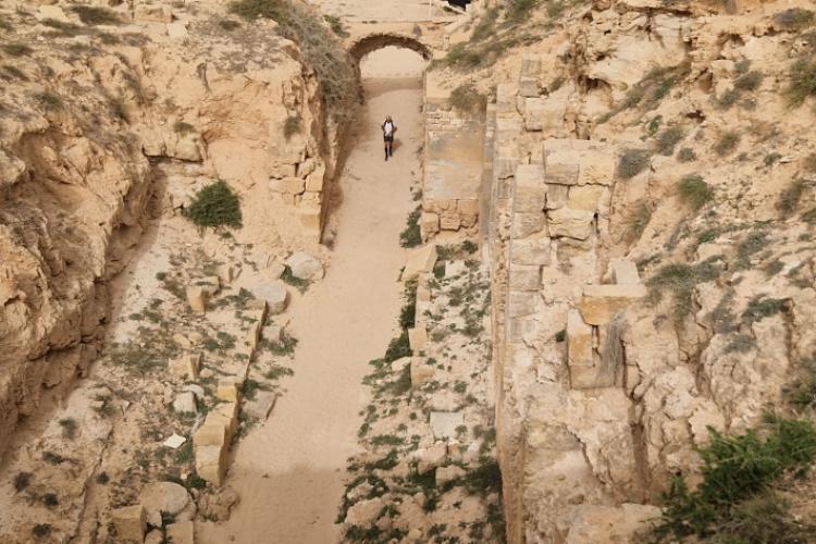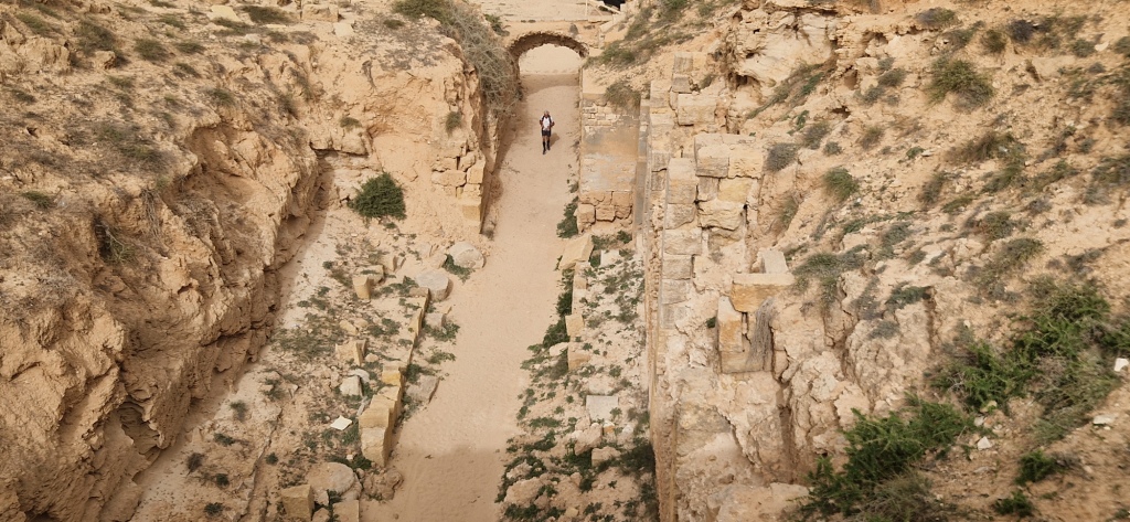 Wir starteten auf einer alten römischen Handelsstraße und nach ca. 2 Kilometern erreichten wir eine Teerstraße, auf der wir 13 Runden gegen den Uhrzeigersinn laufen würden, die sich später in eine festgefahrene Sandstraße änderte und zum Ende durch eine Sanddüne mit Anstieg wieder auf die Teerstraße führte. Am Ende der Runde saßen die Rundenzähler, es gab Wasser, später auch Cola und Obst. Dort war der Rettungsdienst postiert und die Toilettenhäuschen. An jedem wichtigen Abzweiger stand ein Streckenposten und es gab noch 3 weitere Wasserstationen. Die Strecke war bis auf Fahrzeuge vom Veranstalter verkehrsfrei. Optimal. Die Temperaturen lagen zu Beginn bei 20 Grad und es gab eine angenehme Brise vom Meer. Diese Brise wurde im Laufe des Rennens stärker und trieb an der Düne manchmal sogar Sandwolken vor sich her. An den ungeschützten Passagen machte der Wind mir das „Läuferleben“ einige Male ganz schön schwer. Durch die Rundenlänge von etwas über 3 Kilometern hatte ich immer wieder Gelegenheit zu überrundeten Teilnehmern aufzuschließen und wurde selbst nur 3mal überholt und konnte eine zeitlang an der ersten Frau dranbleiben. Heute wollte ich ein wenig Gas geben und dem einen oder anderen zeigen, was der „alte Mann“ noch so drauf hat, vor allem, weil beim letzten Lauf einige Teilnehmer deutlich vor mir aufhörten zu laufen. Schließlich wurde ich hinter den üblichen Verdächtigen und der ersten Frau Gesamtfünfter in 4:25 Stunden. Der Zieleinlauf war in der römischen Arena am Meer gelegen und hatte Einmaligkeitsstatus. Nachdem ich mich erholt und der Pakistani Ziyad mir die Medaille überreicht hatte, ging ich die 300m zurück zur Laufrunde, um meinen Kleiderbeutel abzuholen. Damit zurück ins Stadion, umziehen und essen und trinken. Dann ging's auf Fototour in und um die Arena - fantastische Eindrücke. Mein erster Gedanke: in Griechenland oder Italien wäre der gesamte Bereich abgesperrt, man müsste Eintritt bezahlen und zig Studenten würden auf dem Boden rumkrabbeln und mit kleinen Pinseln, Bürsten und Schaufeln bewaffnet die Steine freilegen, messen und katalogisieren. Hier sah es dagegen so aus, als hätte eine Abrissbirne gewütet und die Reste warteten auf die Abholung durch eine Entsorgungsfirma.