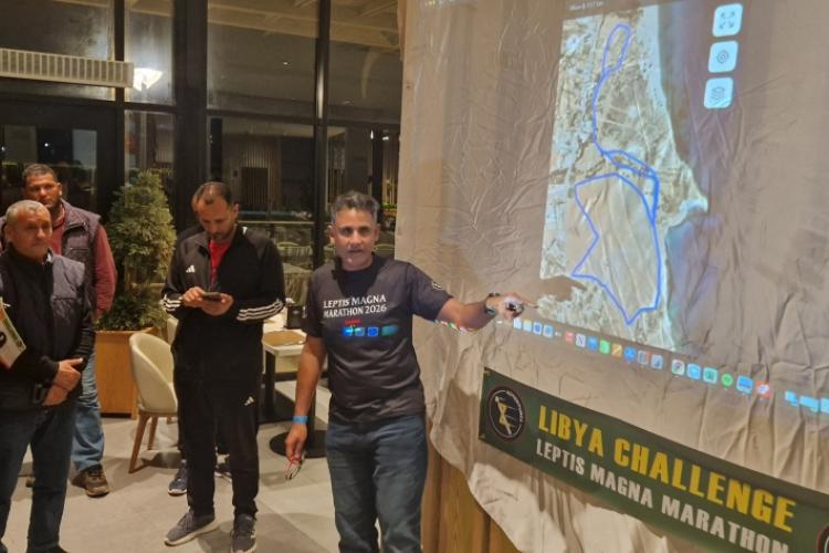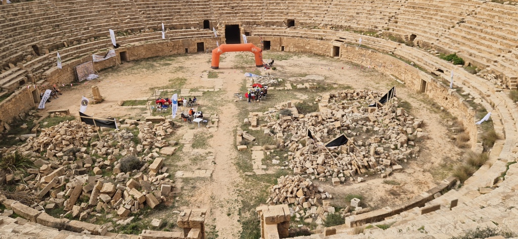 Laufgerecht bekleidet zum Frühstück und danach mit dem Bus zur historischen Stätte Leptis Magna. Die üblichen Fotos wurden geschossen, Interviews für einen Regionalsender, eine kurze Ansprache .. und los.