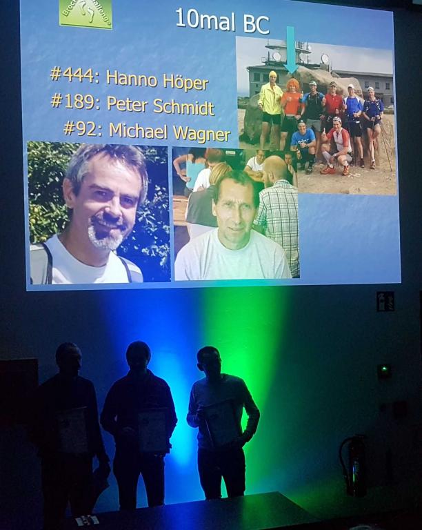 Das größte Dankeschön, gilt allen, die die BC so eindrucksvoll ehrenamtlich vorbereitet, durchgeführt und nachbereitet haben. Da mir hier größtenteils die Namen fehlen, kann ich nur die Aufgaben anführen, und das auch nur beispielhaft und wahrscheinlich unvollständig, die so vorbildlich ausgeführt wurden und werden. Als da wären: Betreuung der Homepage, Anmeldeverfahren, Startbeutel packen, Spendenempfänger Orga,T-Shirts, Aufkleber u.Ä. organisieren, Startbeutel ausgeben, Hochschulsportzentrum organisieren, Gepäcktransport, einwerben von Spenden, Musik, Briefing, Übernachtungen, Frühstück, Fackeln, Streckenmarkierung und -kontrolle, 8 Verpflegungspunkte, Speisen, Getränke, Thermoboxen, Zieleinlauf, Medaillen, Essen im Goethesaal, Busorga, Sanitätsdienst, Fahrdienst, Anträge und Genehmigungen z.B. bei Kommunen, Nationalparkverwaltung u.Ä.,........ Ich glaube, wenn man diese Anzahl an Positionen sieht, kann man erahnen wie viele Menschen unglaublich viel Zeit und Arbeit dahinein investiert haben, damit wir so viel Spaß haben durften. DANKE!!!