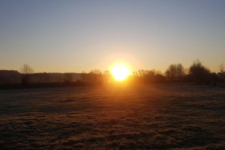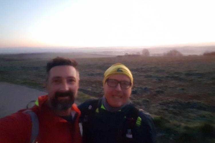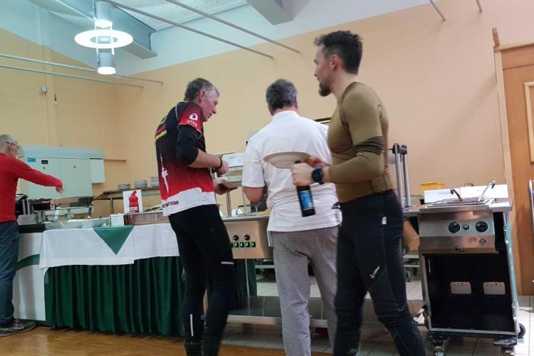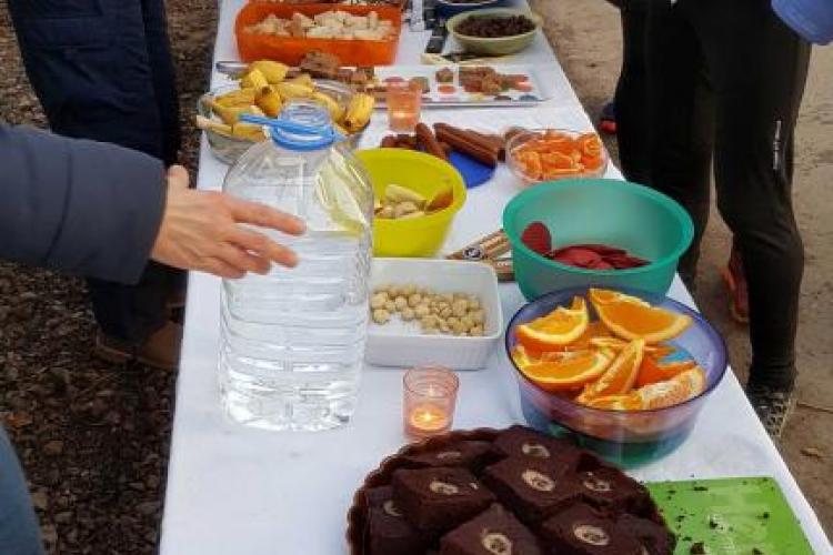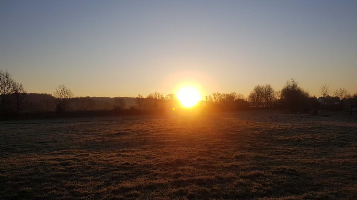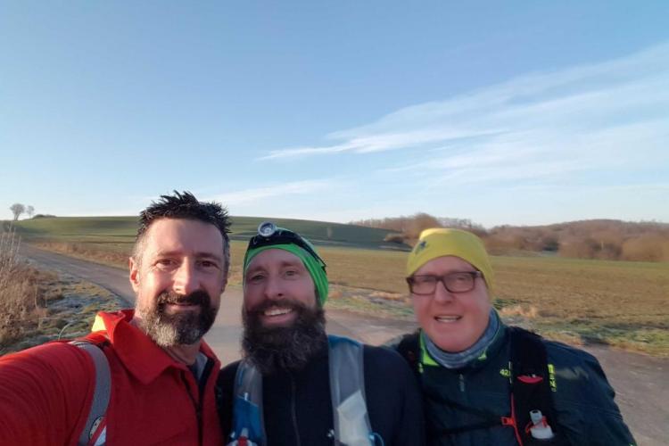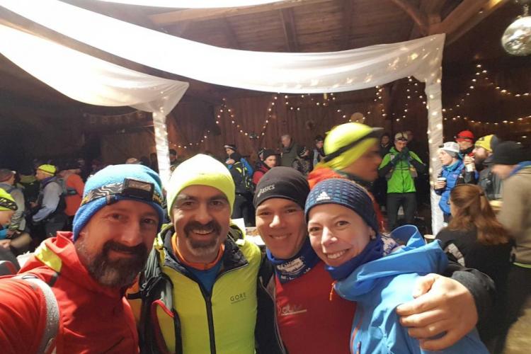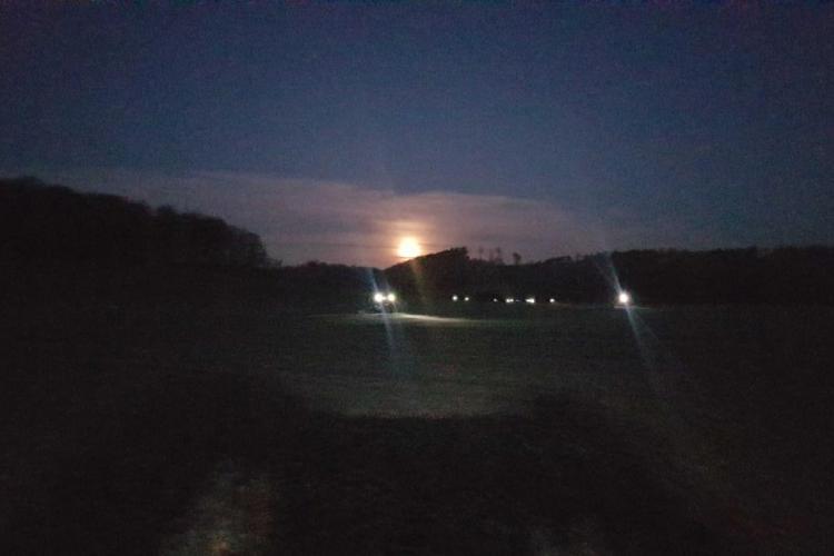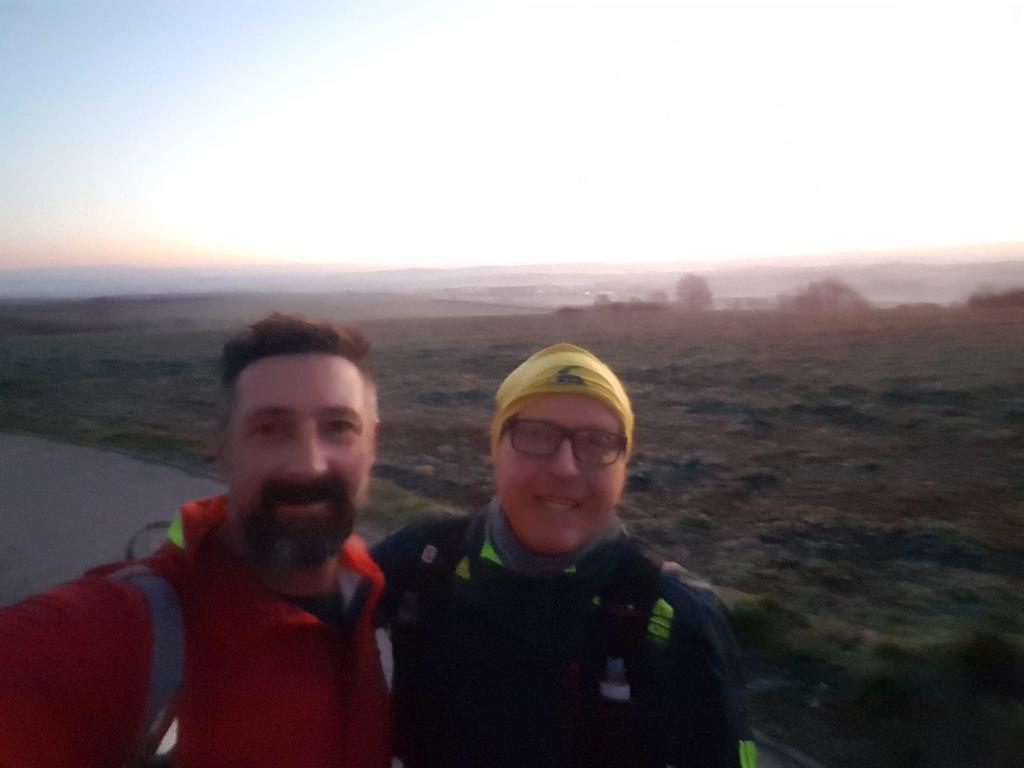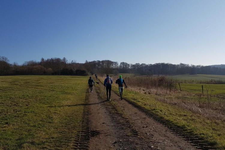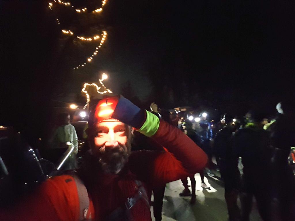 Oberhalb Göttingens am Kehr muss man sich vor dem Start in die Starterliste eintragen. Im alten Tanzsaal gibt es ein grandioses Frühstück mit allem was das Herz begehrt. Und das noch fast komplett (wie auch an allen Verpflegungspunkten) in Bioqualität. Alles lecker und liebevoll zubereitet und angerichtet. Kurz vor sechs, alle raus in die Kälte und das große Gewusel am Start beginnt. Durch die unzähligen Stirnlampen und Reflektoren auch ein beeindruckendes Bild. Die Challenge wird mit dem alten BC Schlachtruf: 'Here We Go!' gestartet. Die ersten Kilometer geht’s durch den mit Fackeln am Wegesrand beleuchteten Göttinger Stadtwald. Den völlig ausgestorben wirkenden Ort Mackenrode passieren wir morgens gegen halb sieben. Nach etwa einer weiteren halben Stunde erreichen wir den VP1 bei Kilometer 10,9 in Landolfshausen. Zeit für ein zweites Frühstück. Der Vollmond geht so langsam unter. Es ist immer noch knackig, einige Grad unter Null. Meine Haare sind fest gefroren.