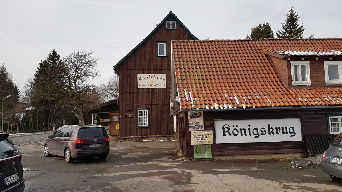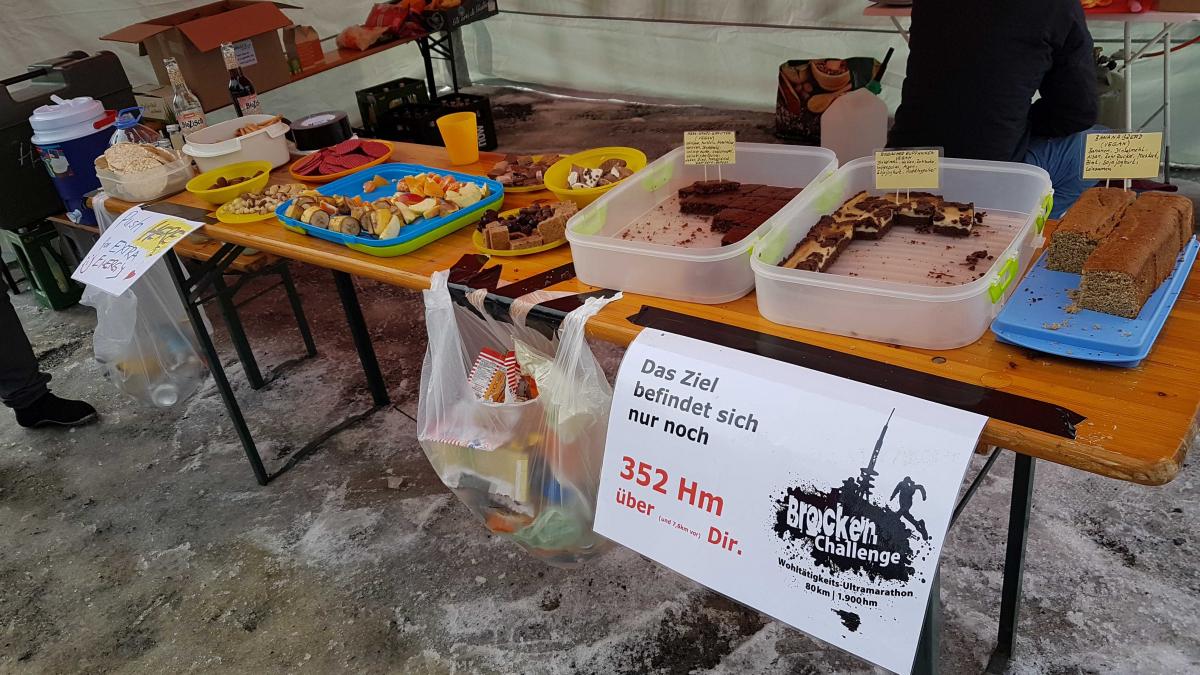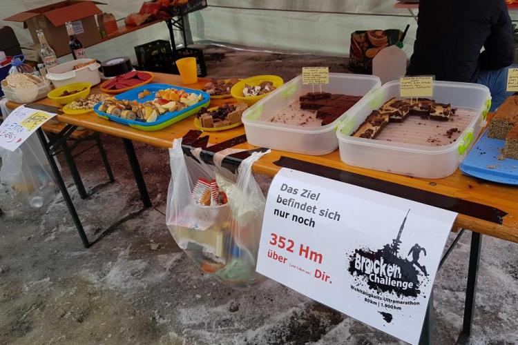Nach Überquerung der Bundesstraße 4 ist man im Nationalpark. Dort die große Überraschung – etwas Schnee. Die Abstände zwischen den Verpflegungspunkten werden nun geringer, psychologisch ganz wichtig und richtig. Also bin ich schon bald bei VP7 am Königskrug. Am Königskrug muss ich immer an meinen guten, viel zu früh verstorbenen Kollegen Johannes denken, der mich lehrte: 'Bist du Harze zu Besuch, kehre ein im Königskruch!' Die Gaststätte ist bekannt für ihre riesigen Windbeutel. 68,5 km liegen hinter mir!