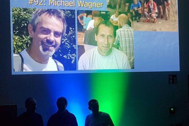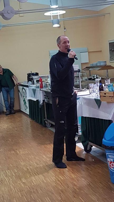 An dieses Vorspiel schließt sich dann um 18.00 Uhr das Briefing im großen Hörsaal der Sportwissenschaftler an. Eingestimmt werden die Läufer mit einem Soundteppich aus Didgeridoomusik von Markus. Dazu historische BC Fotos und Sprüche - absolute Gänsehautatmosphäre! Danach werden drei Läufer geehrt, die die BC zum 10 mal unter die Füße nehmen. Jetzt das eigentliche Briefing, - Strecke – Wetter – Verhaltensregeln - werden souverän von Hecke durchgeführt.