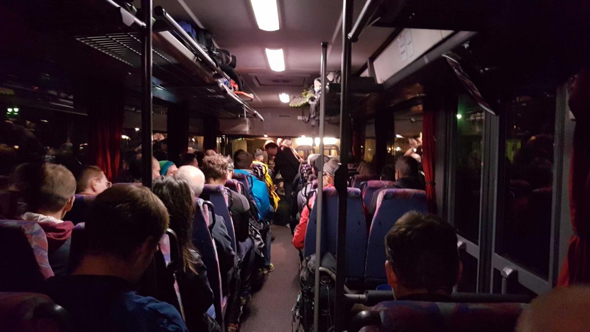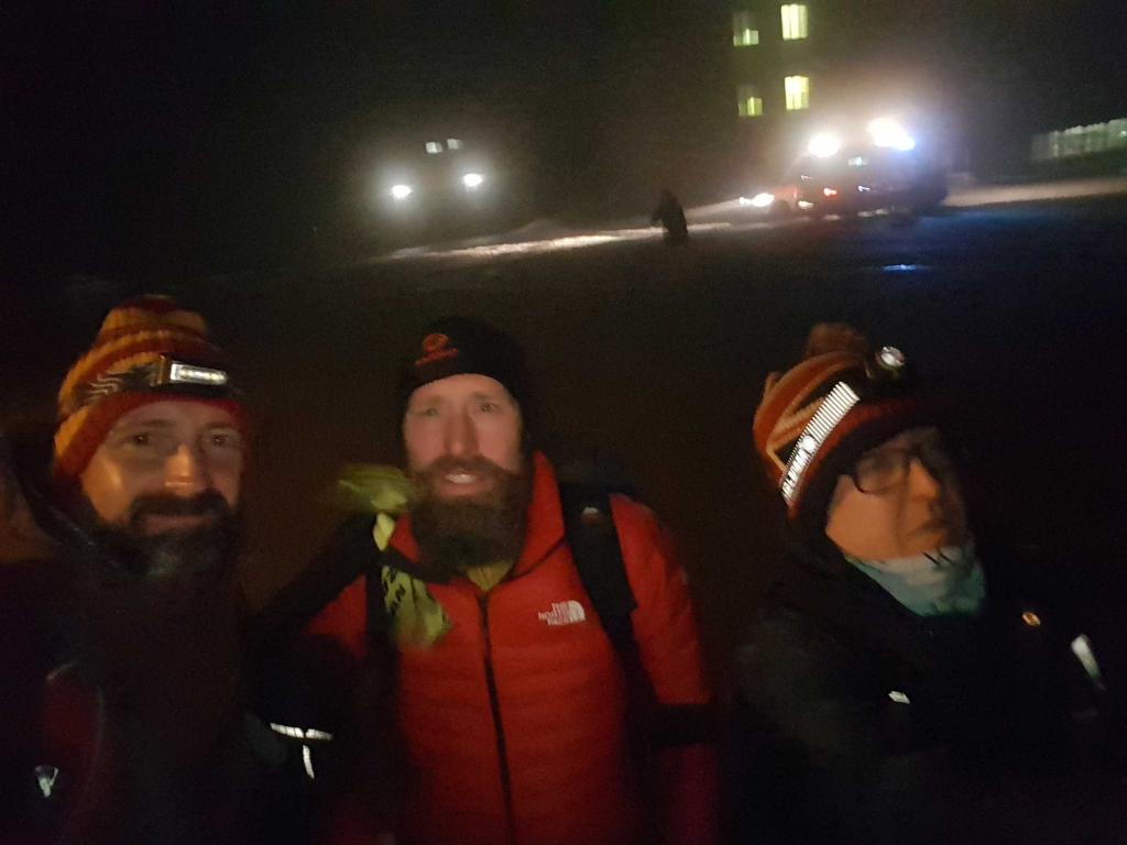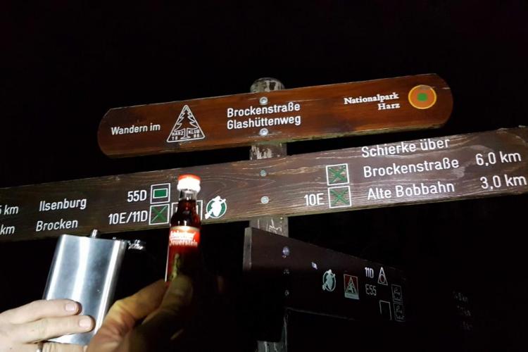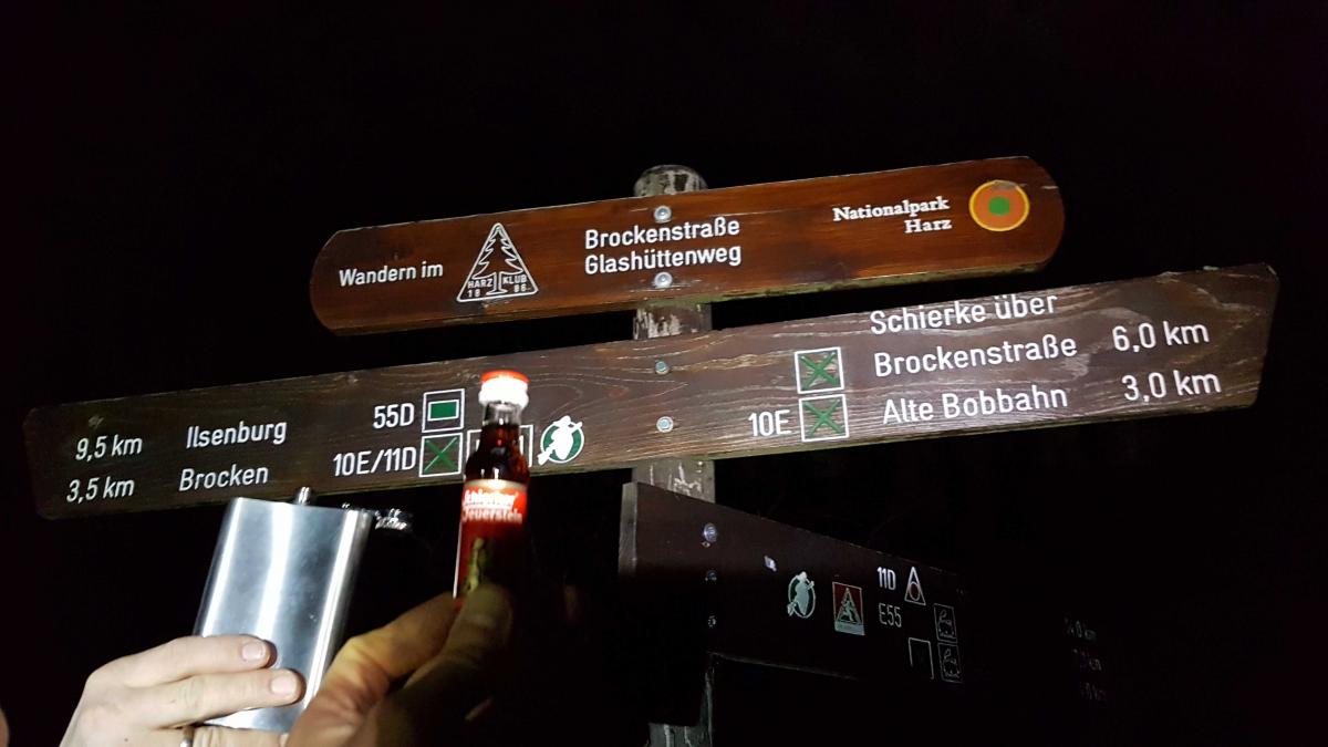 Gestärkt, trocken und ein klein wenig erholt konnte dann der Rückweg angetreten werden. Da kein Bus auf den Brocken fahren darf und die Bahn nicht mehr fuhr, machten sich die Läufer in Kleingruppen auf den Fußweg nach Schierke. 10 km über die Brockenstraße oder 7,5 km über Trampelpfade - natürlich im stockdunklen und mit großem Rucksack auf dem Rücken, aber immerhin bergab. Wir starteten zu viert mit Christoph, Moya und Matthias. Bei diesem sehr schönen Abendspaziergang ließen wir den erlebnisreichen Tag dann noch einmal Revue passieren. Unten in Schierke angekommen, trafen sich die Wanderer im Café Winkler, wo wir gegen 20:30 Uhr von einem Reisebus abgeholt wurden, der uns zurück nach Göttingen brachte. Wenn man dann 1½ Stunden zurück gefahren wird, bekommt man noch mal ein gutes Gefühl dafür, wie weit man vorher gelaufen ist.