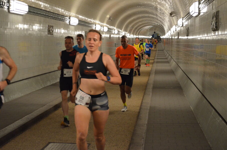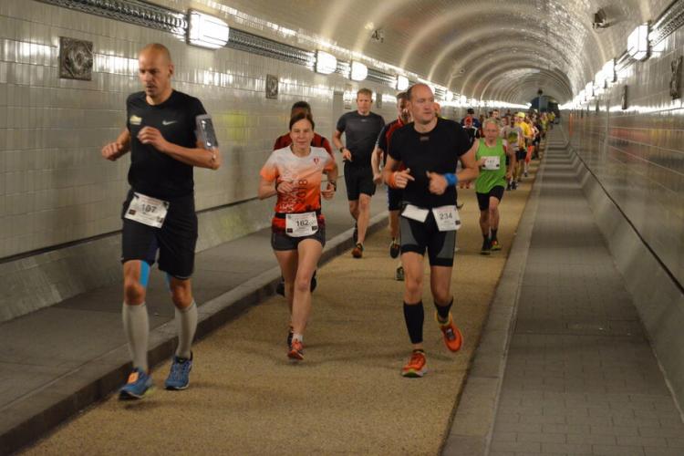 Nach einem kurzen Briefing und einer Ansprache des Tunnelchefs der HPA wurde der Lauf pünktlich um Neun Uhr durch das erklingen eines Nebelhorns, wie es eigentlich nur oben auf der Elbe zu hören ist, gestartet. Die 208 Starter verteilten sich recht schnell auf der Strecke, so das das Laufen immer gut möglich war. Die schnellen Läuferinnen und Läufer konnten gut auf den inneren Fußweg ausweichen und dort überholen. Tunnelbesuchern war der Äußere Fußweg vorbehalten, Radfahrer konnten im Läuferfeld mitschwimmen und so den Tunnel queren. Mit ein Bisschen Rücksichtnahme auf allen Seiten hat das auch sehr gut geklappt. Insgesamt war das Rennen von einem guten Miteinander geprägt.