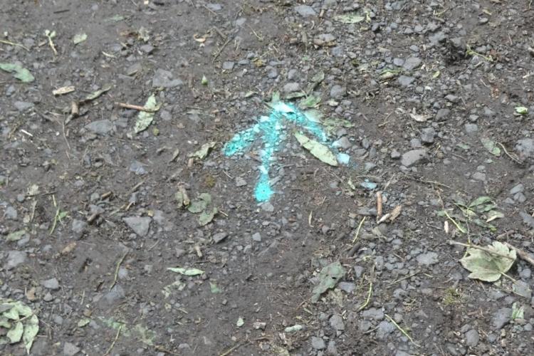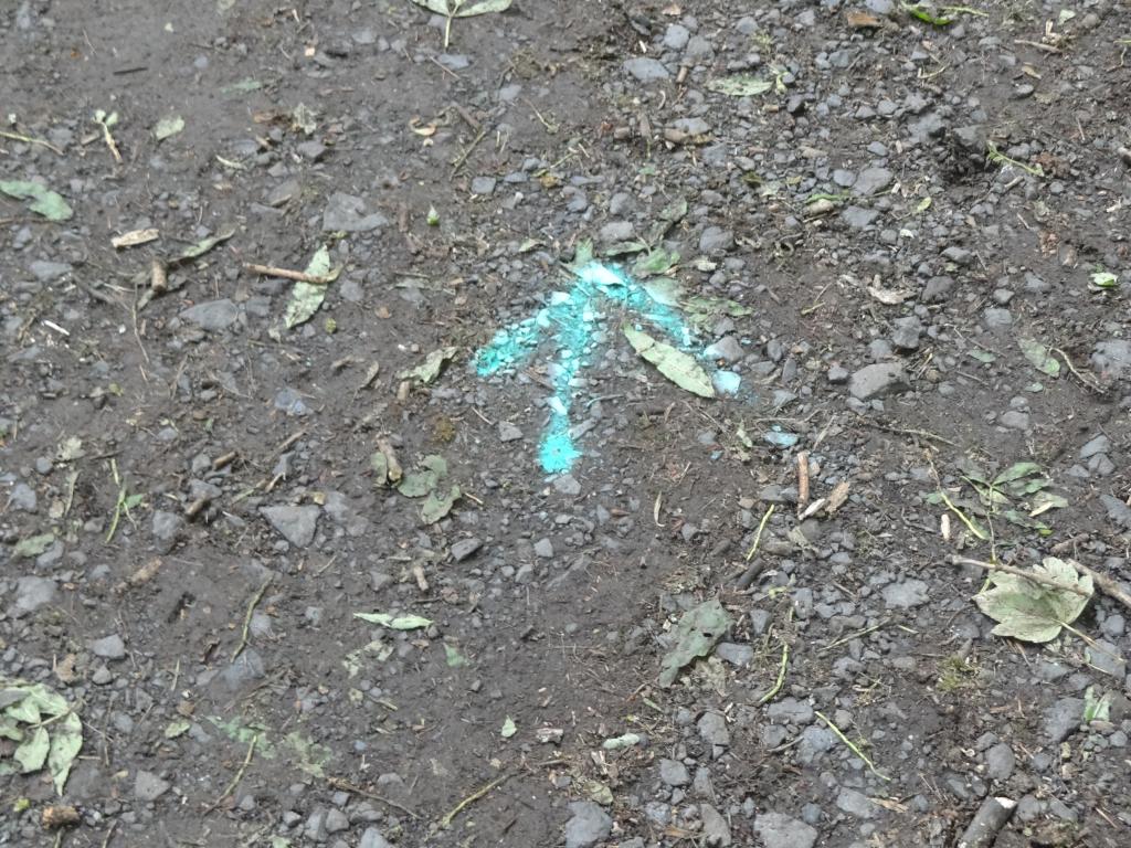 Sylke beschreibt vorab die Strecke und markiert diese während der ersten Runde mit Pfeilen aus Sprühkeide auf dem Boden.