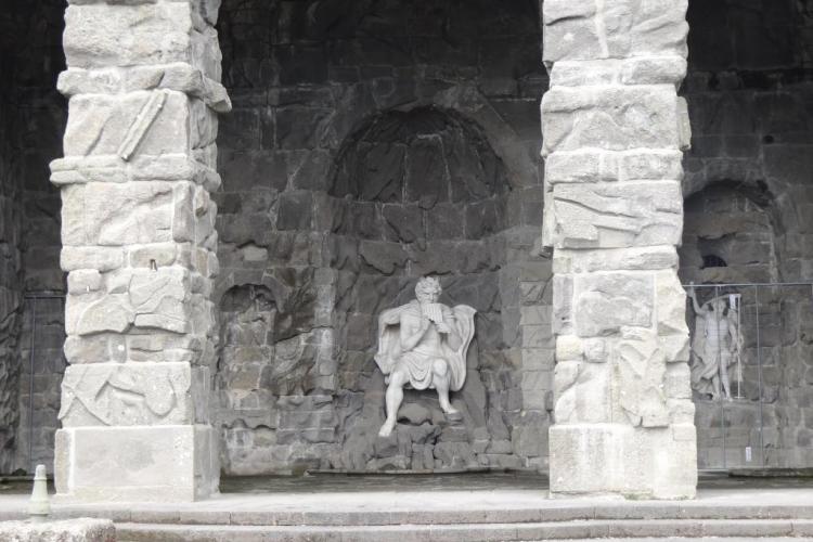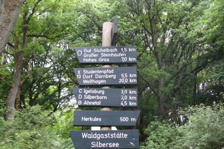 Die Strecke beginnt am Ausgang des Besucherzentrums, führt um das Oktagon, ein Schloss, auf dem die Herkules-Statue steht, mit einem grandiosen Blick auf das Schloss Wilhelmshöhe. Weiter gehts zum Restaurant-Parkplatz, auf dem einige Läufer ihre PKW abgestellt haben, in denen sich die Eigenverpflegung befindet. Nun geht es erstmals in den Wald, um gleich darauf auf einem Asphaltweg an einer Weide mit Rindern und Schafen entlang zu laufen, bevor die Strecke zum Elfbuchen-Kurhotel führt. Dann wird zurück zum Besucherzentrum gelaufen.