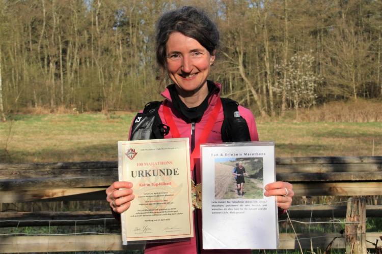 Unser Neumitglied Katrin Tüg-Hilbert lief am Samstag, 24. April 2021, in Hamburg den 100. M/U.