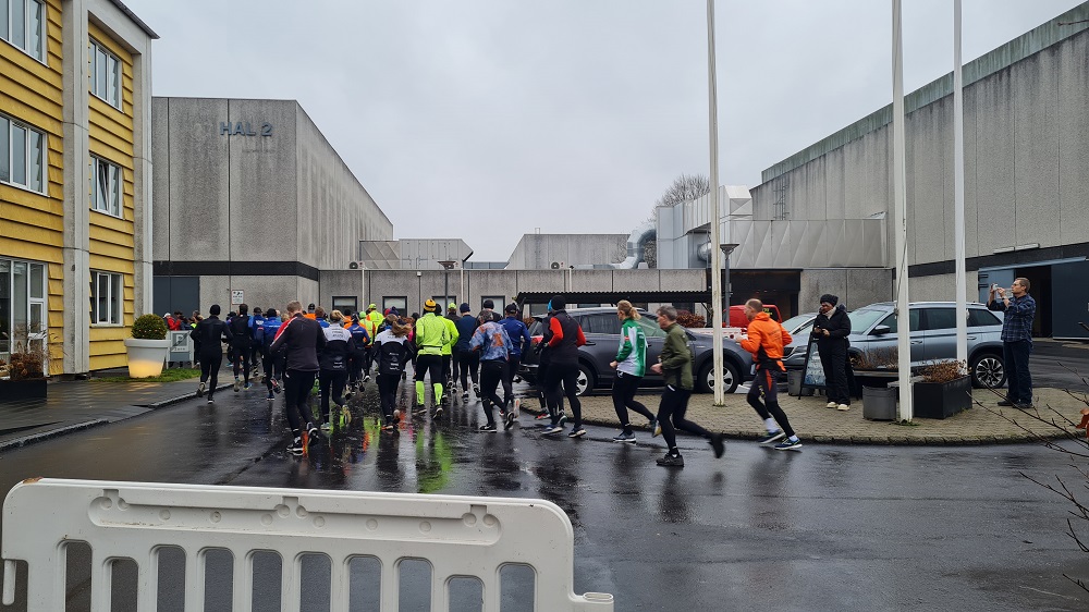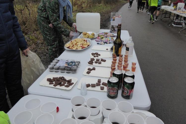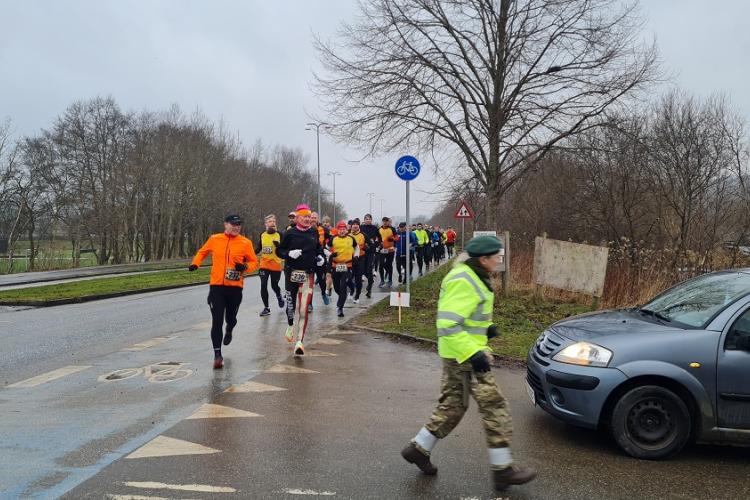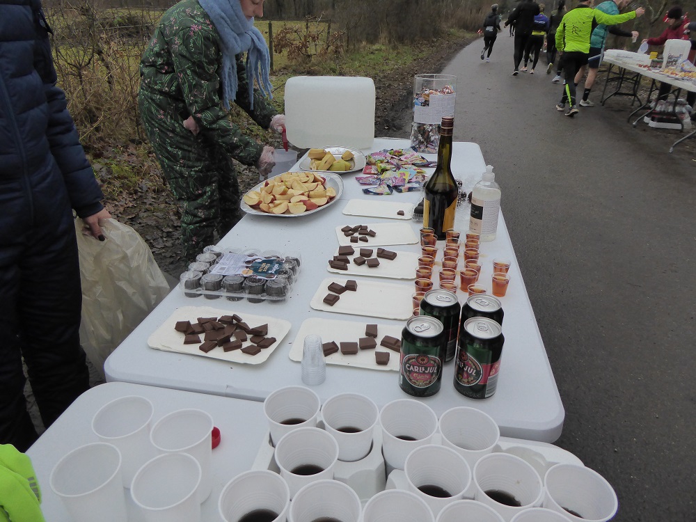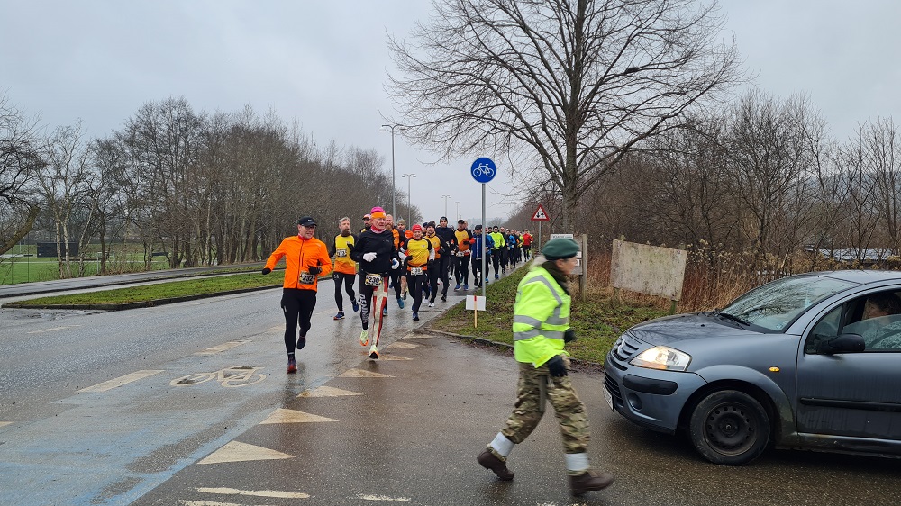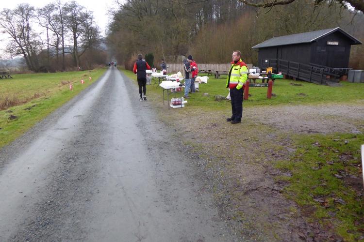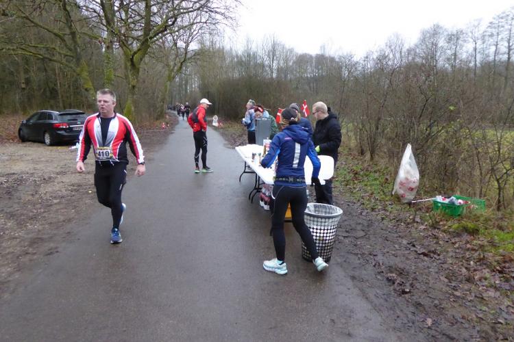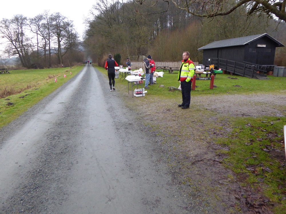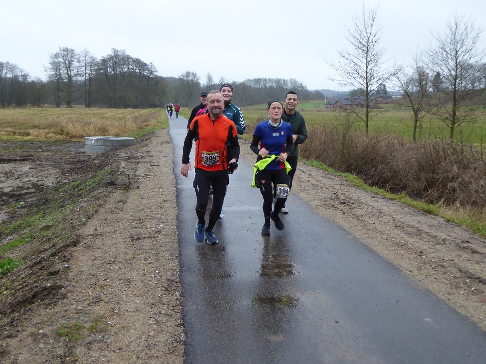 Mit dem Start um 10 Uhr vor dem Mehrzweckkomplex (Konferenzsäle, Schwimmhalle, Restaurant, Sporthalle etc.) besserte sich das regnerische Wetter bei einer Temperatur von 5 bis 6 Grad deutlich. Es kamen nur noch kurzzeitig ein paar Tropfen während des Laufes vom Himmel und es zeigte sich ab 13 Uhr sogar ein paarmal kurz die Sonne. Der etwas böige Wind aus westlicher Richtung unterstütze die Aktiven auf der zweiten Streckenhälfte Richtung Ziel. Die Laufstrecke war überwiegend recht flach, hatte aber auch einige längere leichte Steigungs- und Gefälleabschnitte. Alle 5 Kilometer gab es ein großes Schild mit der Kilometerangabe und auch ca. nach je 5 Kilometern stand ein hervorragend ausgestatteter Verpflegungsstand mit einem netten und hochmotivierten Personal.