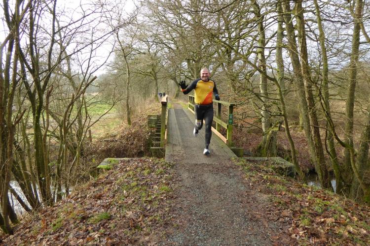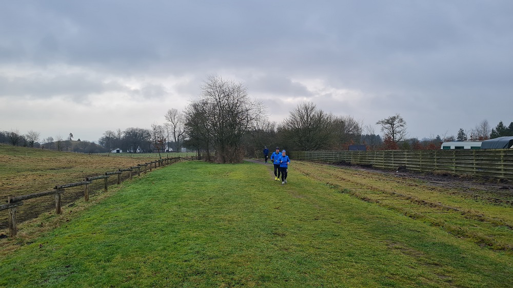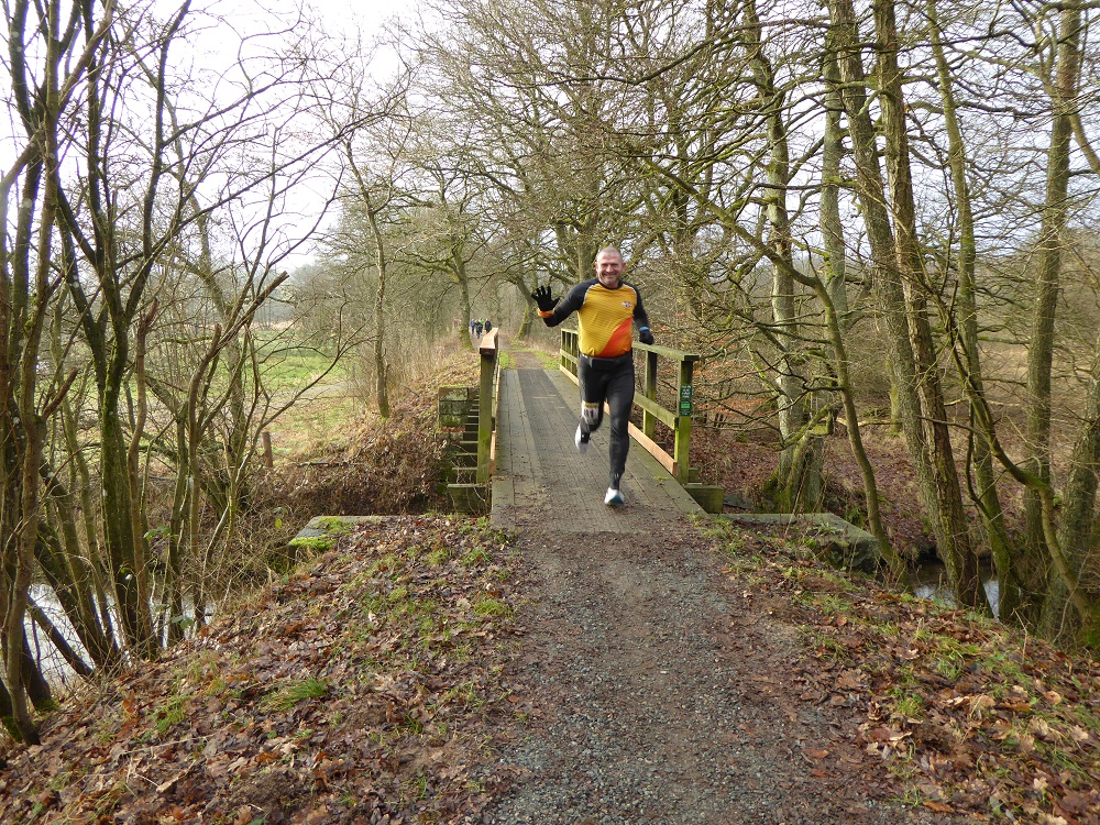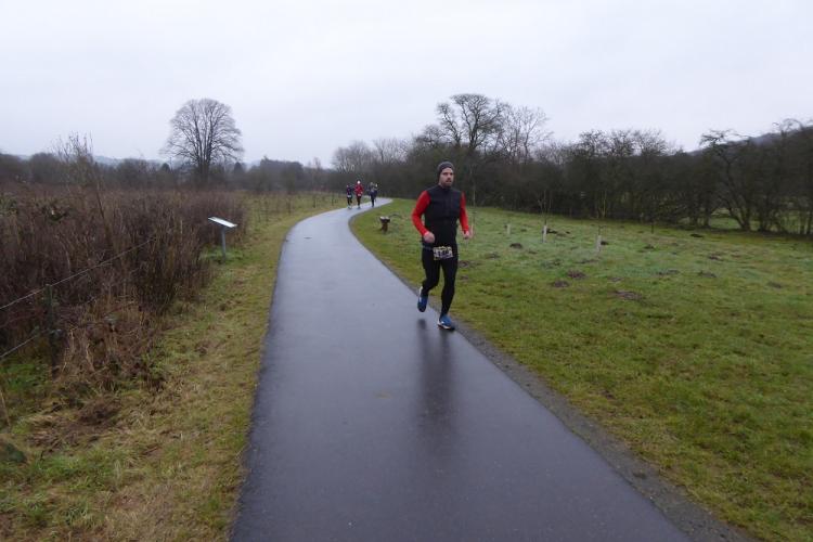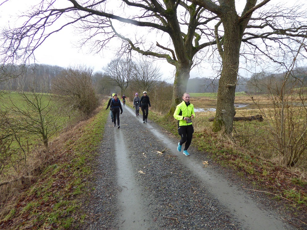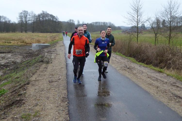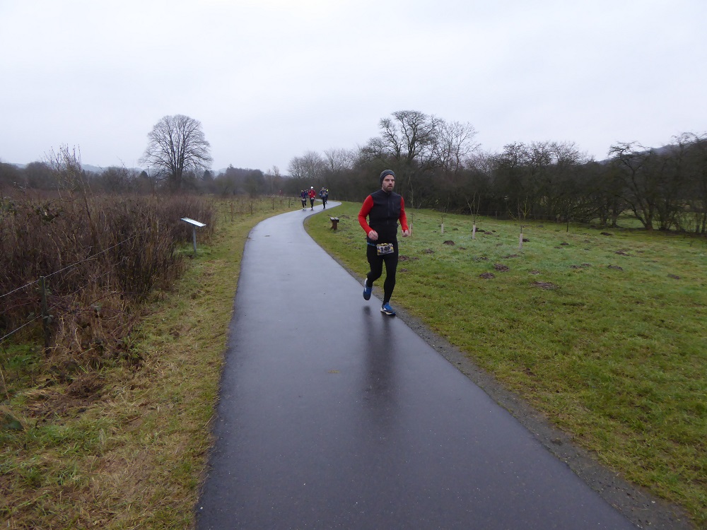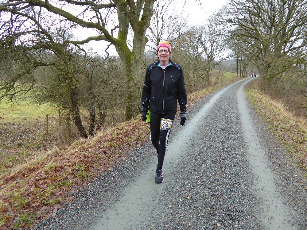 Mit dem Start um 10 Uhr vor dem Mehrzweckkomplex (Konferenzsäle, Schwimmhalle, Restaurant, Sporthalle etc.) besserte sich das regnerische Wetter bei einer Temperatur von 5 bis 6 Grad deutlich. Es kamen nur noch kurzzeitig ein paar Tropfen während des Laufes vom Himmel und es zeigte sich ab 13 Uhr sogar ein paarmal kurz die Sonne. Der etwas böige Wind aus westlicher Richtung unterstütze die Aktiven auf der zweiten Streckenhälfte Richtung Ziel. Die Laufstrecke war überwiegend recht flach, hatte aber auch einige längere leichte Steigungs- und Gefälleabschnitte. Alle 5 Kilometer gab es ein großes Schild mit der Kilometerangabe und auch ca. nach je 5 Kilometern stand ein hervorragend ausgestatteter Verpflegungsstand mit einem netten und hochmotivierten Personal.