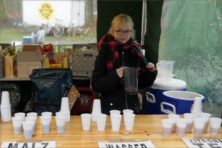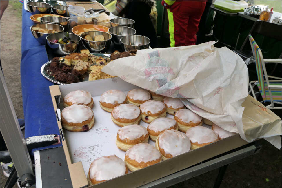 Nun kommt Beate ins Ziel und ich mache mit bei der Getränke- und Berlinerausgabe, um ihre Töchter abzulösen.