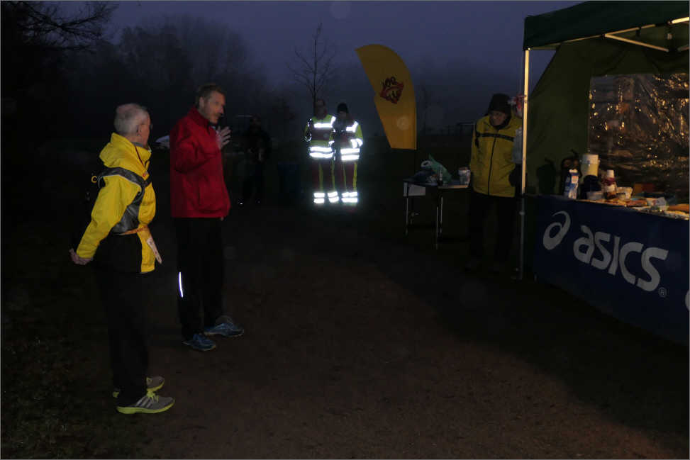 Durch den Wochentagstermin im Dezember gibt es im Orga- und Helferteam einige Veränderungen gegenüber dem üblichen Samstagstermin, da einige arbeiten müssen. Das betrifft sowohl die Streckenmarkierung als auch die Siegerehrung. Ein Helfer bringt den Anhänger, ein weiterer kommt nur zur Startnummernausgabe und beide fahren danach zur Arbeit. Der obligatorische Berichterstatter fährt direkt nach dem Lauf in den Silvesterurlaub; auch dafür ist Ersatz gefunden. Das war uns bei der Terminfindung im August 2017 jedoch bewusst, dass es 1. nicht alle an dem Wochentag dabei sein können, 2. durch die besondere Terminlage auch Urlaube sind und 3. bei einer so langfristigen Terminplanung etwas dazwischen kommen kann. Das stehen wir durch.