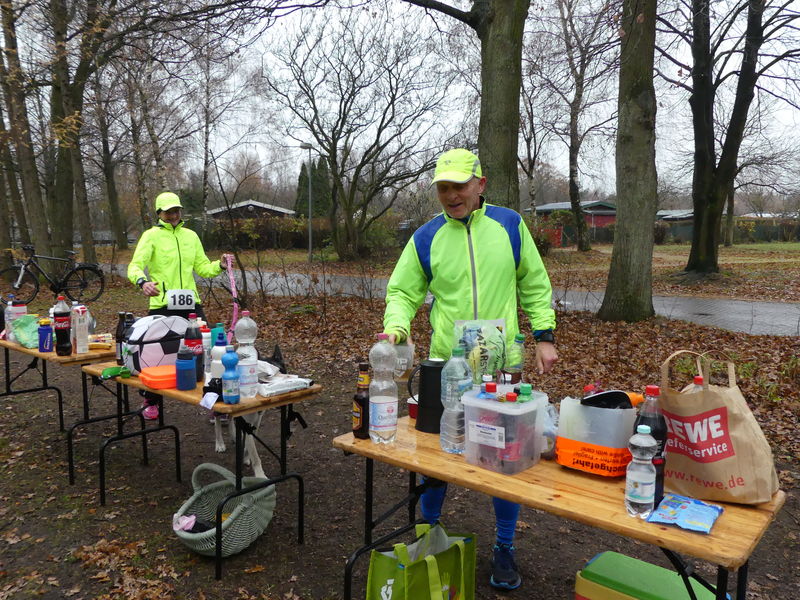 Waren im vergangenen Jahr zum 2. Kaltenkirchener Advent Marathon 29 Starter bei insgesamt 37 Anmeldungen erschienen, so war die Quote beim 3. Kaltenkirchener Advent Marathon am 02.12.2018 recht ähnlich. 36 Anmeldungen gingen ein, 26 Starter erschienen am Starttag. Es gab Absagen z.B. wegen Zehbruch, Armbruch, Erkältung und Rücken. Da passte es, das Organisator Quentsch beim Anziehen am Morgen vor dem Lauf eine Art Hexenschuss in den Rücken schoss. Zum Glück war bereits das komplette Equipment am Vortag im Auto verstaut und Quentsch Sohn Lasse mit als sehr fleißiger Helfer von der Partie. Das Laufwetter war auch ähnlich wie im Jahr 2017, diesmal allerdings mit 6 - 8 Grad ein wenig wärmer, dafür regnete es etwas mehr als im vergangenen Jahr.