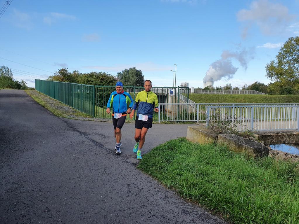 Die Kleinstadt (etwa 4.000 Einwohner) liegt unweit von Böhlen. Und Böhlen hat immerhin einen Bahnhof - hier hält die S-Bahn aus Leipzig. Und so sehen Micha und ich doch eine Chance, den Marathon der Woche zu absolvieren und melden uns an. Am Sonntagmorgen (18.09.2022) sitzen wir dann mit Fabian im ICE von Berlin aus Richtung Sachsen, steigen in Leipzig um, treffen 100MC Mitglied Jens Körner in der S-Bahn Richtung Böhlen und lassen uns die letzten Kilometer von Patrick im Auto kutschieren.