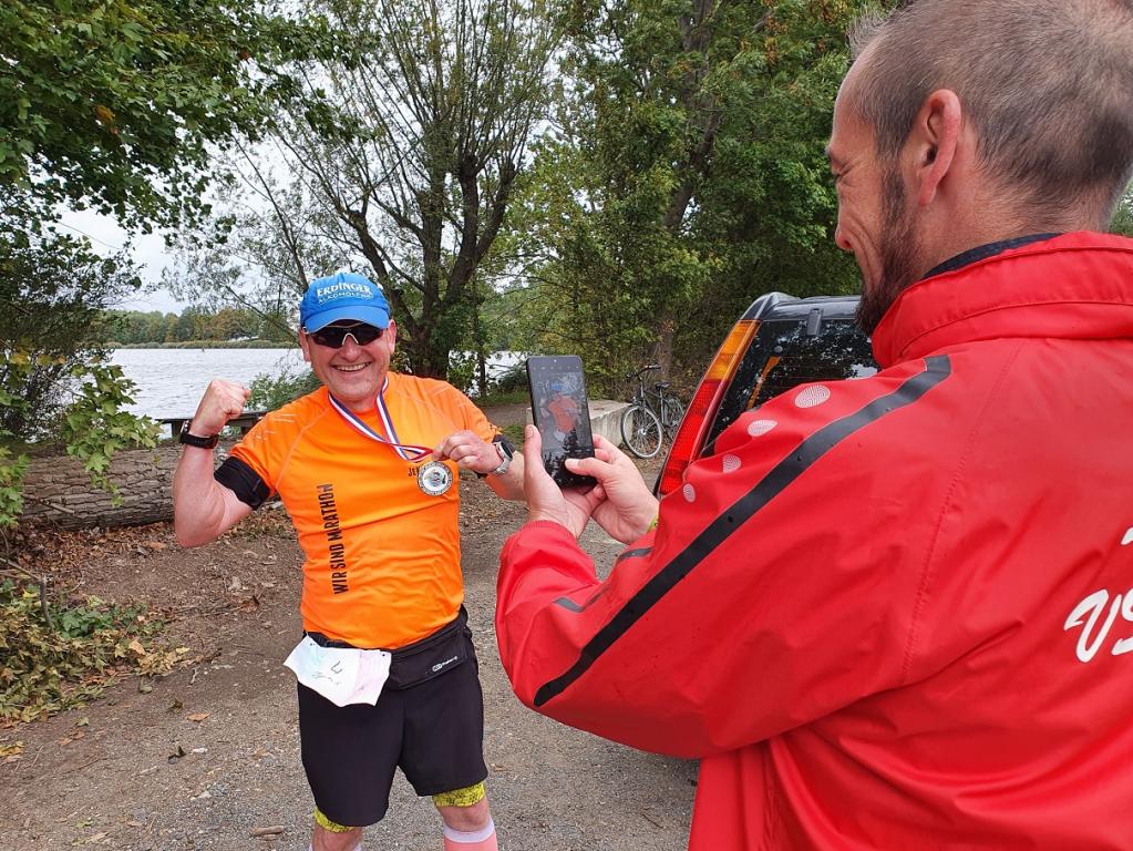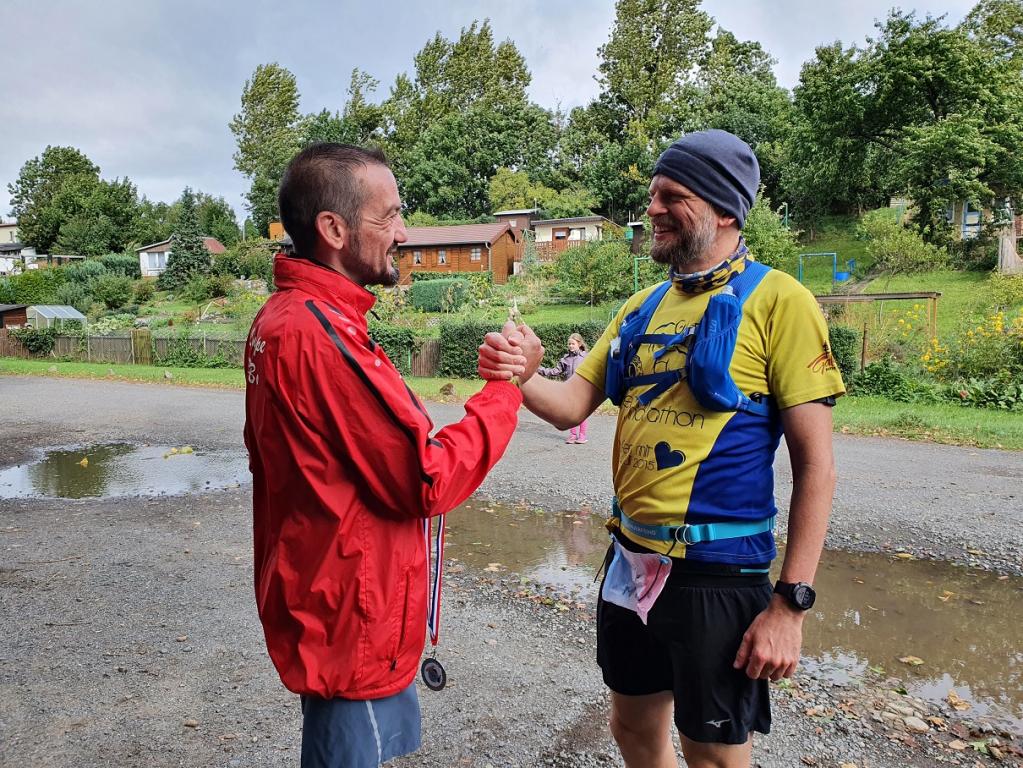 13 Teilnehmer nahmen an der liebevoll organisierten Veranstaltung teil: sechs Marathonis und sieben Halbmarathonis. Und wie immer ist es schön zu sehen, wie verschieden die Menschen sind und wie harmonisch die Sportveranstaltungen verlaufen. Jüngste Teilnehmerin war Theresa (19), die zum ersten Mal einen Halbmarathon lief. Ältester Teilnehmer war Marathoni Ralph (63) aus Leipzig, der wie so oft von seiner Frau vor Ort unterstützt wurde.