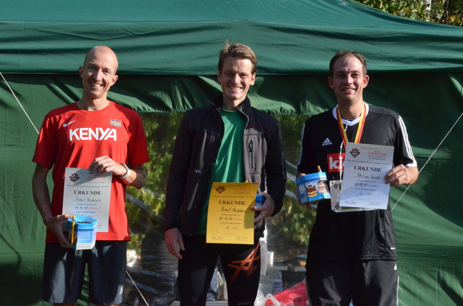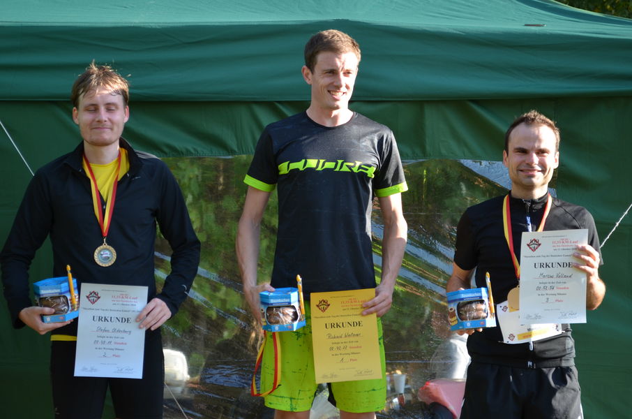 Siegerehrung der Männer 11km: 1. Richard Westover in 0:42:27 2. Stefan Oldenburg in 0:48:11 3. Marcus Volland in 0:52:56