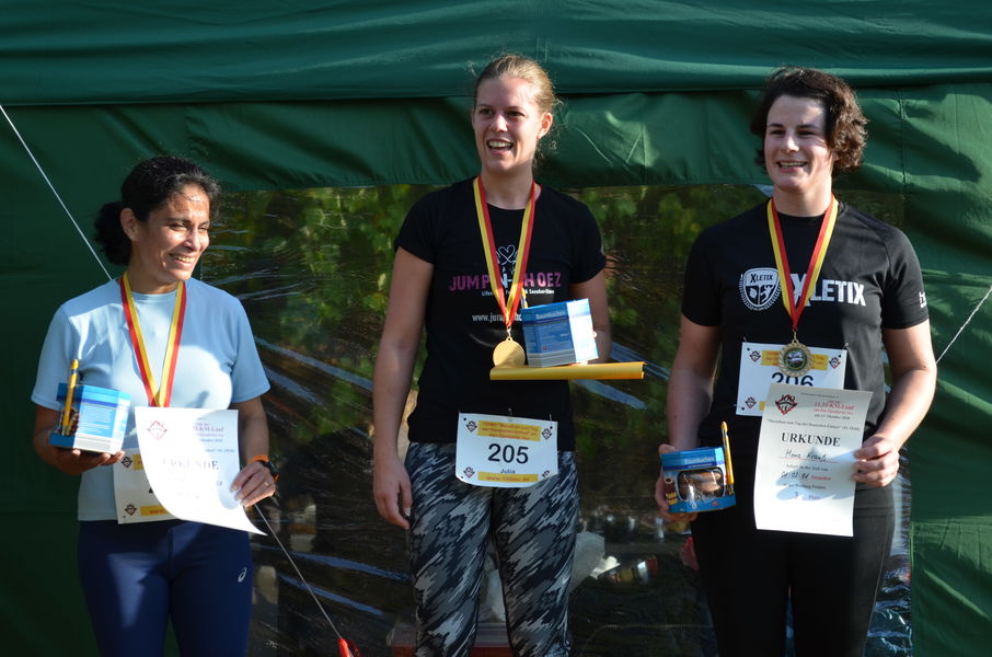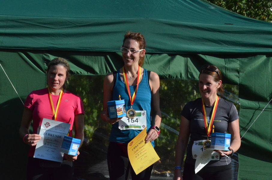 Siegerehrung der Frauen 11km: 1. Julia Nordmeyer in 0:58:32 2. Simone Christoffelz in 0:59:38 3. Mona Krauß in 1:02:01