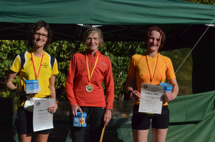 Siegerehrung der Frauen Marathon: 1. Irmi Klemm in 4:09:48 2. Beate Gröhn in 4:28:07 3. Monika Tegge-Walderstein in 4:31:01