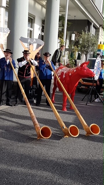 Die Runde wird etwas abgeändert 2 mal durchlaufen und ist gespickt mit Highlights. Durchs Stadion, durch die Kongresshalle, Innenstadt, überall ist Musik und Party, die Strecke gleich einer Partymeile bei der viele Privathaushalte ihr eigenes Fest daraus machen. Beeindruckend (optisch und akustisch) waren auch die beiden Stellen, an denen Alphornbläser mit ihren gigantischen Instrumenten postiert waren. Vor dem KKL bestimmt zehn Alphornspieler auf einer Stelle und in der Altstadt noch einmal drei, auf dem engen Rathausplatz, dort mit einem gewaltigen Echo. Langeweile kommt nicht auf. Unerwähnt darf auch nicht die gigantische Zahl an freiwilligen Helfern bleiben, die den Lauf unterstützen. Alle Verpflegungspunkte waren top ausgestattet, sowohl mit Material als auch mit Personal. Ordner an der Strecke gab es gefühlt alle 100 m. Ziel war im Verkehrshaus, einem der Top Museen der Schweiz. Der Suisse City Marathon, der auch einen Halbmarathon und einen 10 km Lauf, sowie einige Staffeln im Programm hat, ist das Breitensportereignis in der Zentralschweiz. Gefühlt stehen alle Einwohner und auch viele Institutionen und Firmen top hinter dem Lauf. Große Sponsoren unterstützen die Durchführung. So ist der Lauf absolut professionell aufgestellt.