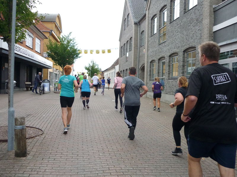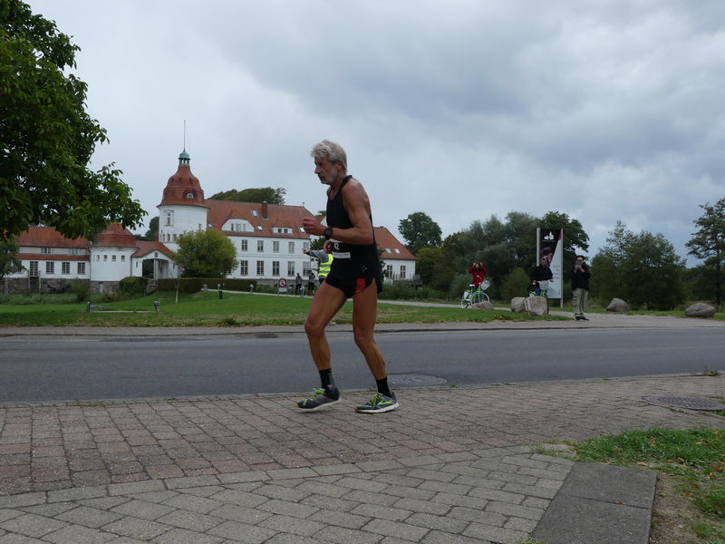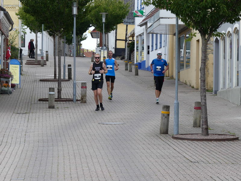 Der 1/8 Marathon wurde pünktlich um 12:15 Uhr gestartet und das Läuferfeld setzte sich schnell in Bewegung und „Ruckzuck“ befand sich Arne unter den letzten Teilnehmern, da er ein paar Fotos von diesem Lauf schießen wollte. Auch diese 5,274 km lange Laufstrecke war wellig und nachdem Arne auf den ersten zwei Kilometer noch so einige Fotostopps eingelegt hatte, ließ er den Fotoapparat in seiner Tasche verschwinden und erhöhte die „Schlagzahl“ und die Keuchgeräusche drastisch. So überholte er bis zur Fußgängerzone von Nordborg eine größere Anzahl Teilnehmer, „verreckte“ aber an einer Steigung ca. 300 Meter vor dem Ziel völlig und wurde als Spaziergänger noch von zwei jungen dänischen Läuferinnen gnadenlos überholt. Nach 27:07 Minuten waren die 5,274 Kilometer aber erledigt und von den insgesamt 108 Finishern kam Arne sogar noch auf den 22. Platz.
