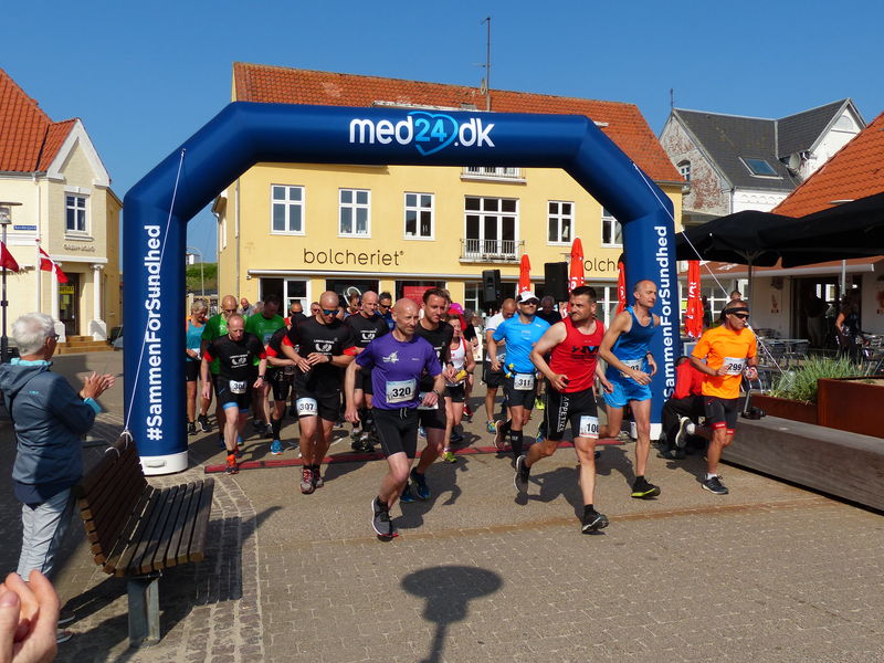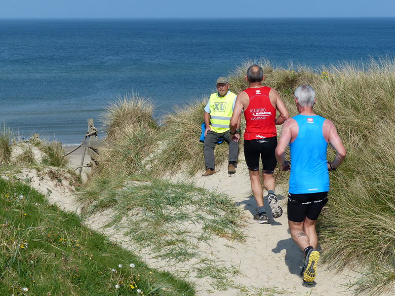 Um 10 Uhr fiel der Startschuss in der Fußgängerzone von Lökken. Die ersten 5 km führten durch die kleine Ortschaft. Nach dem Erreichen des Campingplatzes im Norden von Lökken (dort einer von drei Verpflegungsständen auf der 10,55 km Runde) führte ein kurzer Abschnitt durch die Dünen zur Steilküste. Die Aktiven mussten nun eine Stahltreppe zum Strand runter und die nächsten ca. 4 km hatten die Läufer nur noch Sand unter den Laufschuhen. Der letzte Kilometer führte noch einmal durch die Ortschaft. In der Fußgängerzone startete man nach dem Durchlaufen des Start- und Zielbogens in die nächste Runde.