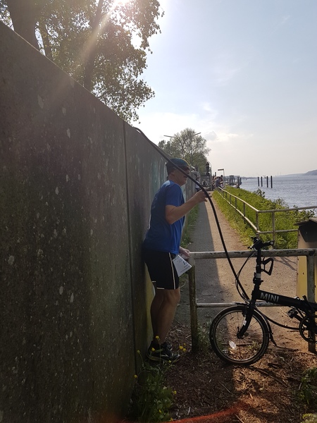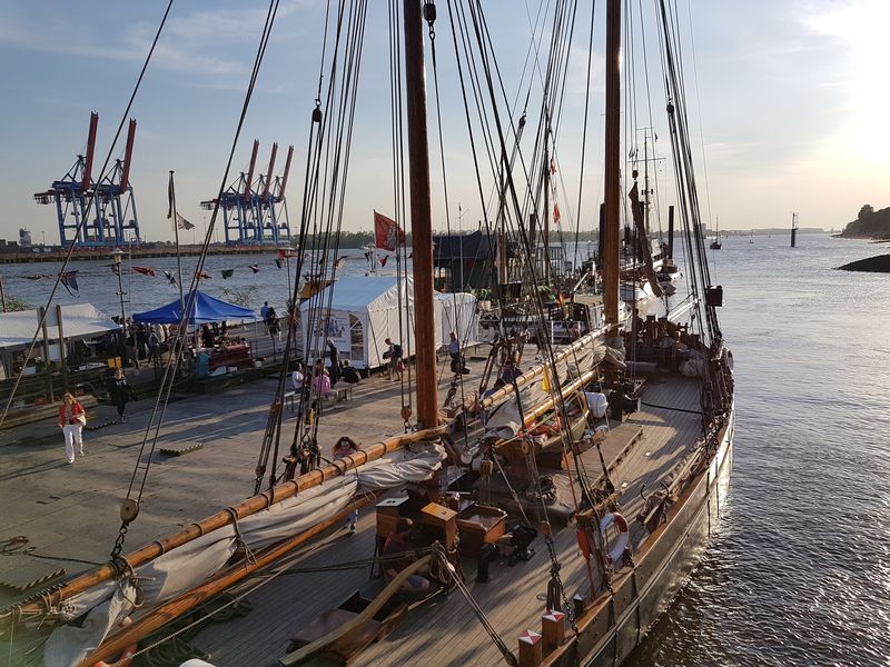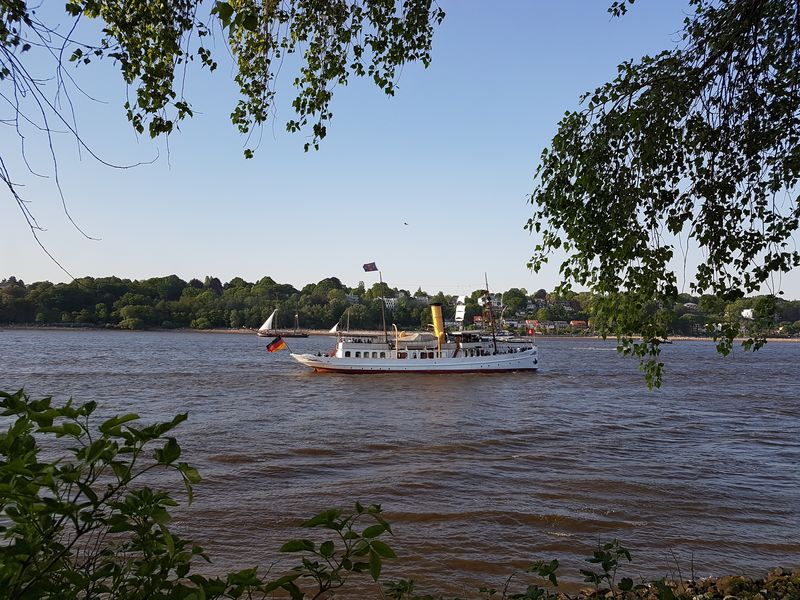 Für mich gestaltete sich die Anreise extrem kurz und kurzweilig. Erst 5 Minuten mit dem Rad von Zuhause zum Anleger Övelgönne/Museumshafen. Dort auf die Fähre der Linie 62 und ganz wichtig, nicht vergessen den Haltewunschknopf zu drücken. Die folgende Haltestelle Bubendey-Ufer ist nämlich eine Bedarfshaltestelle und der Käptn legt nur auf Wunsch an! Also, nach weiteren 5 Minuten Elbfahrt bin ich dann am Treffpunkt, direkt am Anleger.