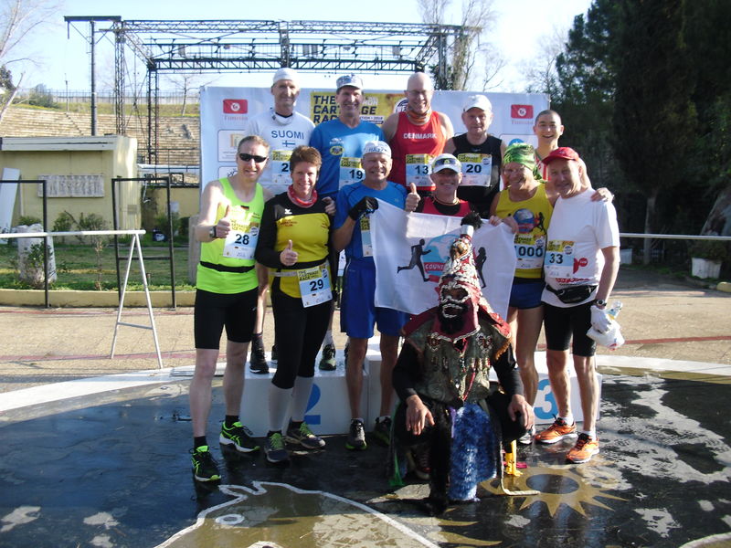 Die Strecke war nicht gerade eben, so dass wir uns mehrfach einige Steigungen hochschleppen mussten – mehrfach, weil es eine erste große Halbmarathonrunde gab und die zweite dann kleiner war, so dass einige Passagen mehrfach zu laufen waren. Ich traf kurz nach dem Start den „Marathonpapa“ Michael aus Osnabrück und Lukas aus Aachen, so dass die restlichen 41 km mit Unterhaltungen wie im Flug vergingen. Doris hatte sich Klaus aus Dänemark geschnappt, so dass auch sie immer Anschluss hatte. Durch die Mehrfachpassagen mit Wendepunkten sahen wir Internationalen uns häufiger, so dass immer wieder Grüße ausgetauscht werden konnten – sehr angenehm. Im Ziel gab es sogar zwei Massagebänke, die nicht überfüllt waren, so dass ich mich noch schnell durchkneten lassen konnte, bevor ich Doris entgegen ging. Dabei fotografierte ich und bekam von Jürgen (der läuft übrigens am 3.10.2018 in Quickborn den Marathon mit dem Buchstaben „Q“!) die Warnung, besser nicht am Präsidentenpalast zu knipsen. Nach Doris´ Finish gings per Bahn in die Unterkunft, die wir eine weitere Nacht gebucht hatten. So konnten wir entspannt duschen und uns noch etwas hinlegen, denn unser Direktflug nach Deutschland startete um 3:00 Uhr morgens. Davor waren wir noch einmal in der „Fressmeile“, wo wir uns wieder an Fladenbroten versuchten – diesmal sogar mit Omelett, aber definitiv ohne die rote Sauce. Darüber lachten zwar die einheimischen Kunden herzlich, aber wir waren ja „gebrannte“ Kinder. Per Taxi ging es dann nachts zum Flughafen, wo wir die übernächtigten Läufer trafen, die keinen weiteren Tag im Hotel gebucht hatten. In Frankfurt kam die Bundespolizei zur Passkontrolle direkt ins Flugzeug, so dass wir gerade noch unseren Anschluss nach Hamburg schafften. Dort angekommen hatten wir wieder sonniges und eisiges Winterwetter – und freuten uns, dass wir unsere Winterjacken dabei hatten und nicht ohne zum Auto gehen mussten.