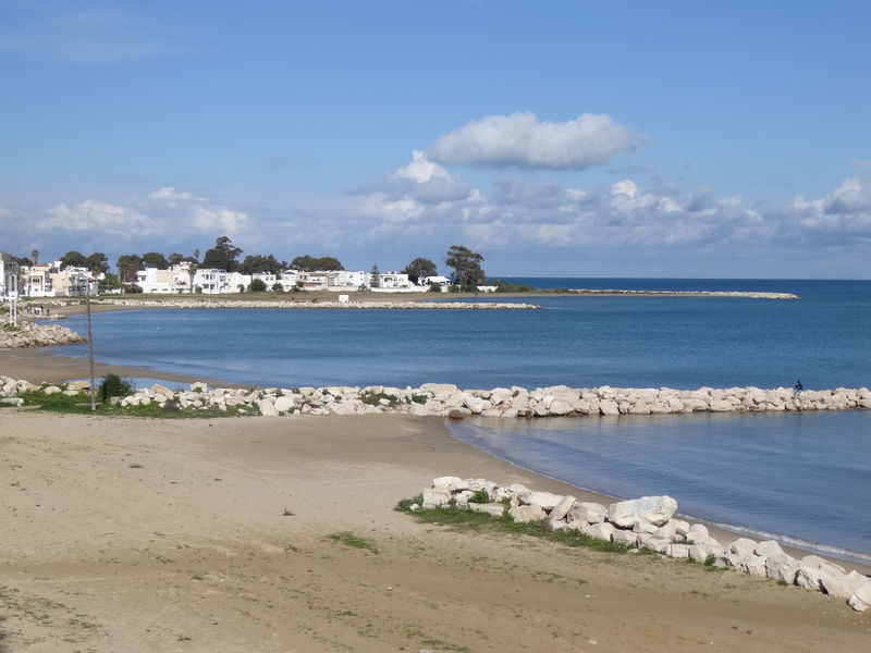 Ende Februar löste Doris ihr „du-denkst-du-bekommst-eine-Reise-zum-Geburtstag“-Gutschein ein. Es ging nach Karthago an die tunesische Küste. Beim Anflug sahen wir bereits den großen Binnensee, den die Römer mit einem Damm überquert hatten. Heute gibt es dort eine Schnellstraße und die Trasse der Nahverkehrsbahn. Karthago kennt man noch aus dem Geschichtsunterricht: Hannibal – Elefanten – Alpen – Krieg gegen Rom. In den Jahrhunderten vor und nach Christi Geburt hatte Karthago bis zu 400.000 Einwohner. Upps, da lebten unsere Vorfahren noch in Höhlen und Wäldern. Nach der Landung gings per vorbestelltem Taxi zu unserer Unterkunft. Es war ein Privathaus direkt am Meer gelegen – leider zu kalt zum Baden. Wir waren bei minus 15° C zum Hamburger Flughafen gefahren und hatten uns schon gefragt, was wir in Tunesien mit unseren Winterjacken machen sollten. Die Antwort lautet: Anziehen, denn tw. gab es doch einen frischen Wind. Zum Glück hatte sich die Wetterprognose (Regen) geirrt, und wir kamen ohne Regenschirm aus. Nach dem Einchecken in der Unterkunft ging es an der Moschee (zum Glück etwas weiter von unserem Schlafzimmer entfernt als seinerzeit in Skopje) vorbei in die örtliche Einkaufsstraße: Mittagessen. Etwas enttäuschend, denn statt dem Couscous (das wir aus Marokko kannten) gab es eher Fastfood (Pizza, Pommes, etc.). Dann weiter zu Fuß zum römischen Theater, wo die Startunterlagen ausgegeben wurden. Was wir nicht wussten: bei 400.000 Einwohnern hatte man damals zwei Amphitheater. Wir haben zuerst das „andere“ gefunden, in dem es die Startnummern nicht gab. Kein Problem: einmal über den Hügel, kurz an der Kathedrale (von den Franzosen erbaut) vorbeigeschaut, wo Doris bei einem Verkäufer schnell noch einen „Schnäpper“ geschossen hat: eine kristalline Wüstenrose – auf die kostenlose Beigabe einer „echten punischen Münzen“ habe ich dann dankend verzichtet. (Ich wollte den armen Kerl ja nicht in den Ruin treiben).