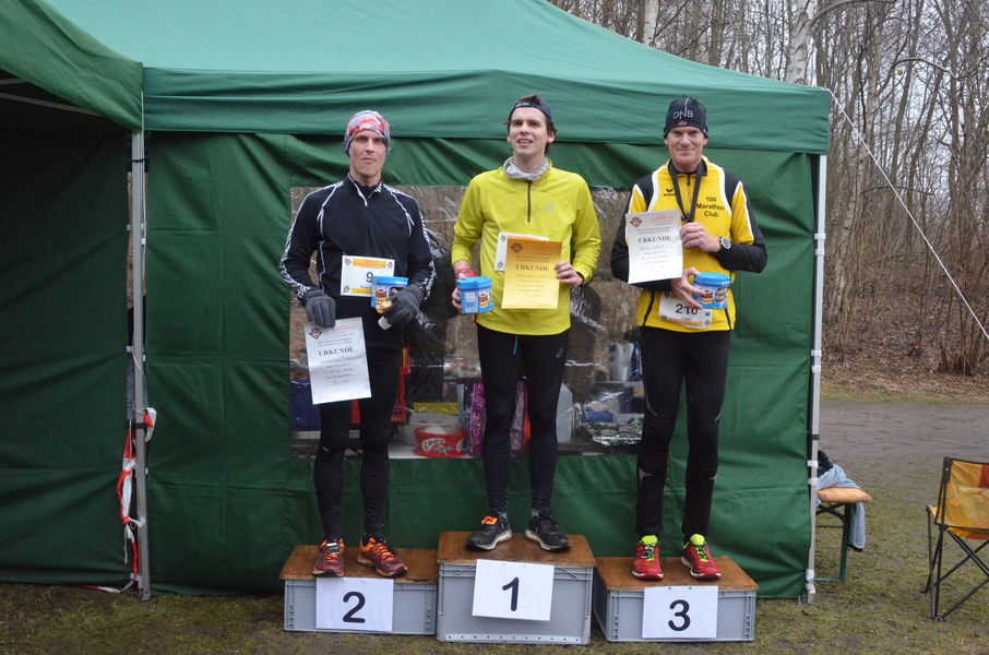 Siegerehrung der Männer Marathon: 2. Mirko Peters 3:10:26 1. Robert Mergner 3:07:58 3. Markus Sunfleth 3:20:02