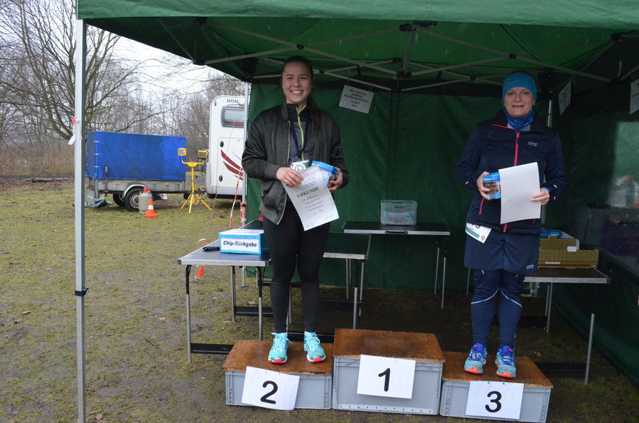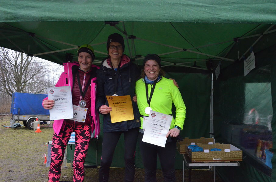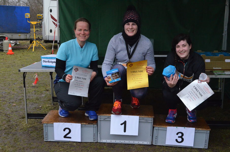 Siegerehrung der Frauen 11km: 2. Gaby Albers 1:04:55 1. Mona Krauß 1:03:56 3. Larissa Stabenow 1:09:20