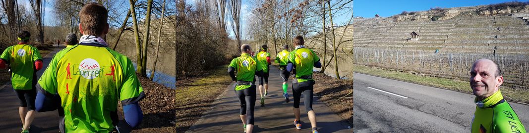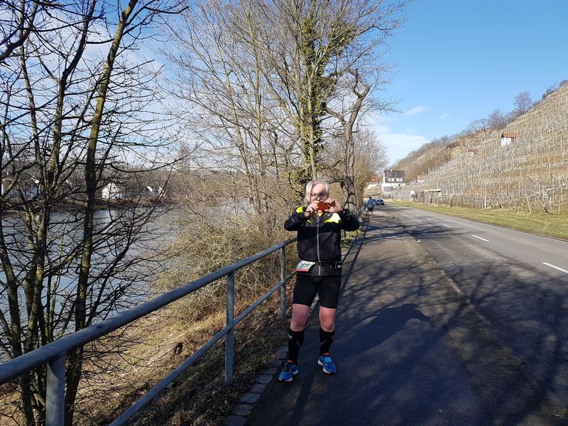 Die Runde ist exakt und DLV vermessen und genau 21,1 km lang und zweimal identisch zu durchlaufen. Die Strecke ist flach und weist nur im Bereich von Brücken, Steigung und Gefälle auf. Wir laufen durchgehend auf festem Untergrund, Asphalt oder Pflaster. Weiterhin behaupte ich, die Strecke ist wenigstens auf einer Seite, manchmal sogar auf beiden Seiten sehr schön. Blick auf den Neckar, in die Weinberge manchmal aber auch auf die Kläranlage oder Industriebetriebe.