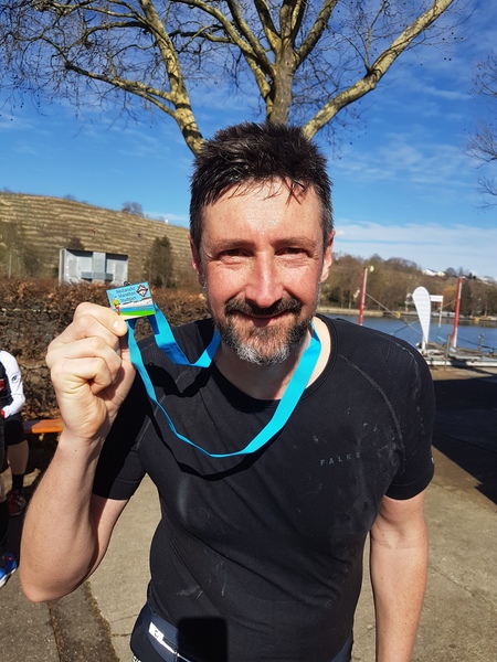 Übrigens, wer genau hinsieht, erkennt, dass der Veranstalter sich auf der Medaille selber verewigt hat , nette Idee!!! Nur die blaue Mütze hat heute gefehlt.