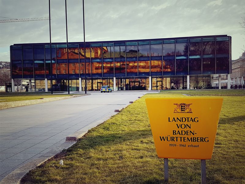 Anschließend habe ich mir bei einem Abstecher in die Stuttgarter Innenstadt einen ersten Eindruck von der baden-württembergischen Landeshauptstadt verschafft. So besichtigte ich am Sonntag zunächst das Landesparlament, den Baden-württembergischen Landtag. Der baden-württembergische Landtag in Stuttgart wurde 1959-61 von den Architekten Viertel, Linde und Heinle erbaut. Der dreigeschossige Stahlbetonskelettbau befindet sich am Eckensee unweit des Hauptbahnhofs.