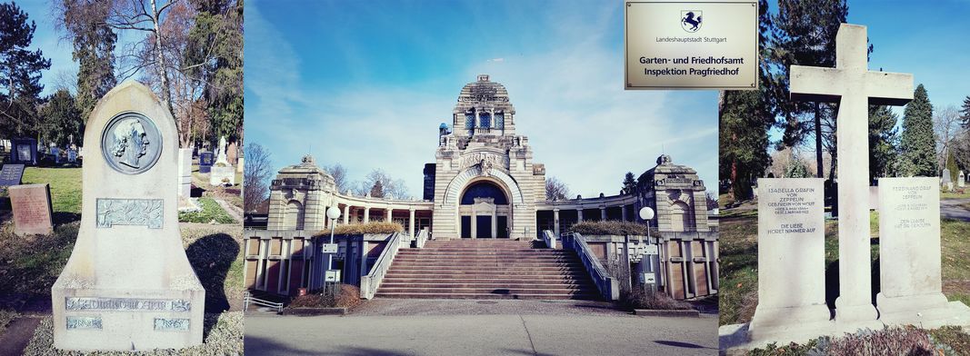 Auf dem Pragfriedhof bestaune ich die große Feierhalle, ein 1907 fertig gestellter Jugendstilbau. Außerdem besuche ich die Gräber von Luftschiff Konstrukteur Ferdinand Graf Zeppelin und dem Dichter Eduard Mörike.