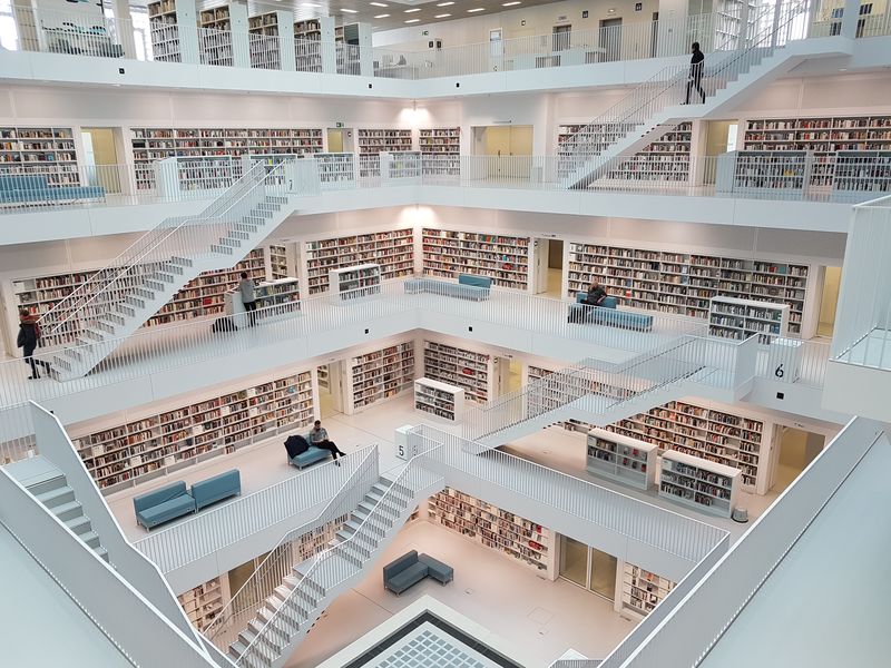 Nur wenige hundert Meter weiter erreiche ich das beeindruckendste Gebäude, welches ich in den letzten Jahren besichtigt habe. Die 2011 eröffnete Stadtbibliothek! Der vom koreanischen Architekten Eun Young Yi geschaffene Kubus ist ein Würfel mit der Kantenlänge von 40 Metern. Er gliedert sich in Quadrate, neun auf jeder Achse. Von außen schon spektakulär, toppt er von innen doch mal alles. Man betritt zuerst einen 4 Stockwerke hohen Kubus bevor man dann durch das Treppenhaus die oberen Etagen erreicht. Dort sind die kommenden fünf Stockwerke Galerieartig aufgebaut. Alles ist sehr schlicht, in weiß gehalten, die Strukturen sind klar gezogen. Die Kubusform und die Aufteilung in Quadrate zeigte sich im Stadtbild auch sehr schön am Rathaus und am Kunstmuseum.
