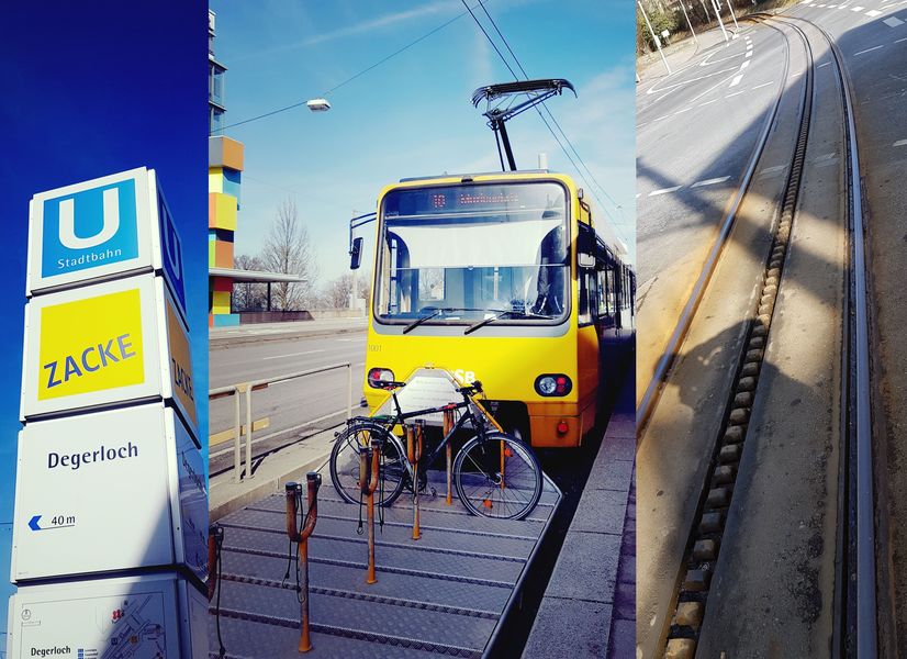 Nun bleibe ich unten im Talkessel und radel ohne Steigung und Gefälle zum Marienplatz. Dort besteige ich die Zahnradbahn von den Stuttgarter nur liebevoll Zacke genannt. Nicht, weil ich nicht gerne bergauf fahre, sondern weil ich einmal mit der 1884 Eingeweihten Zahnradbahn fahren möchte. Von der Talstation überwindet sie auf 2,2 km Streckenlänge zu ihrem Zielbahnhof Degerloch, einen Höhenunterschied von 204 m. Es handelt sich hier um die einzige Zahnradbahn in Deutschland, die im regulären Betrieb, im öffentlichen Personennahverkehr eingesetzt ist und nicht ausschließlich touristischen Zwecken dient. Oben angekommen geht es mehr oder weniger ebenerdig weiter von Degerloch über die Waldau, am legendären Stadion der Stuttgarter Kickers vorbei, zum Fernsehturm Stuttgart.