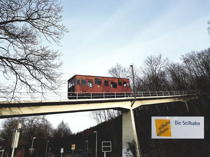 Mit dem Rad geht es in rasanter Fahrt bergab, wieder in den Talkessel. Dort steuere ich noch die Standseilbahn an, die 80 m hoch zu einem Friedhof fährt.