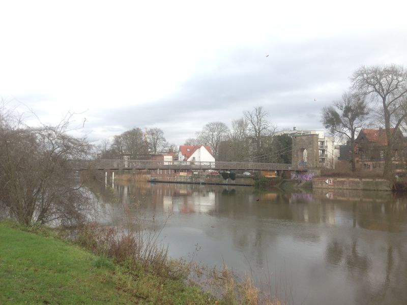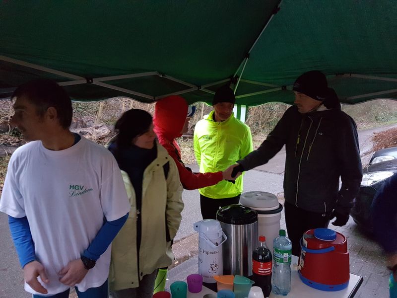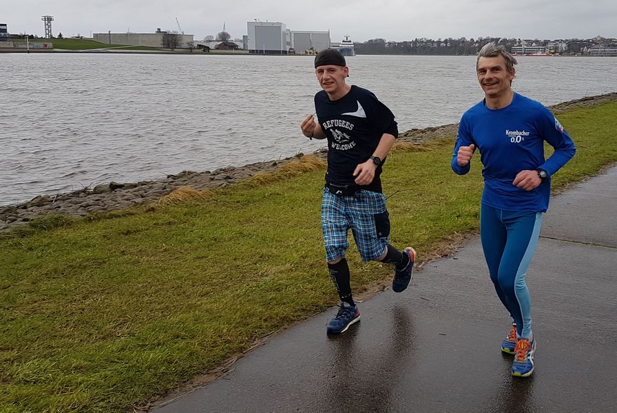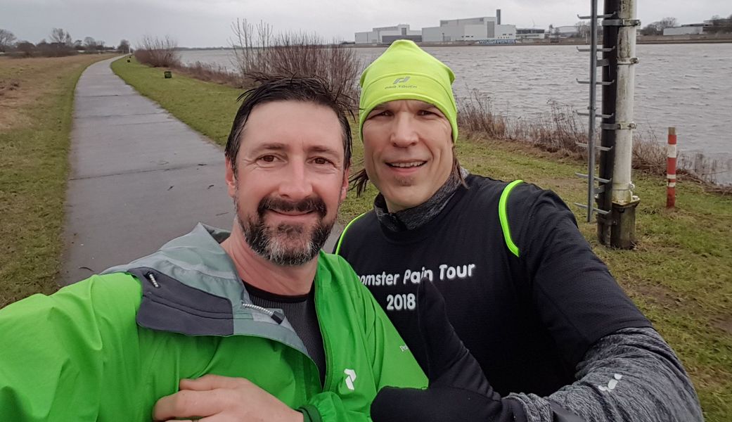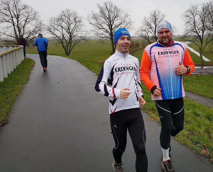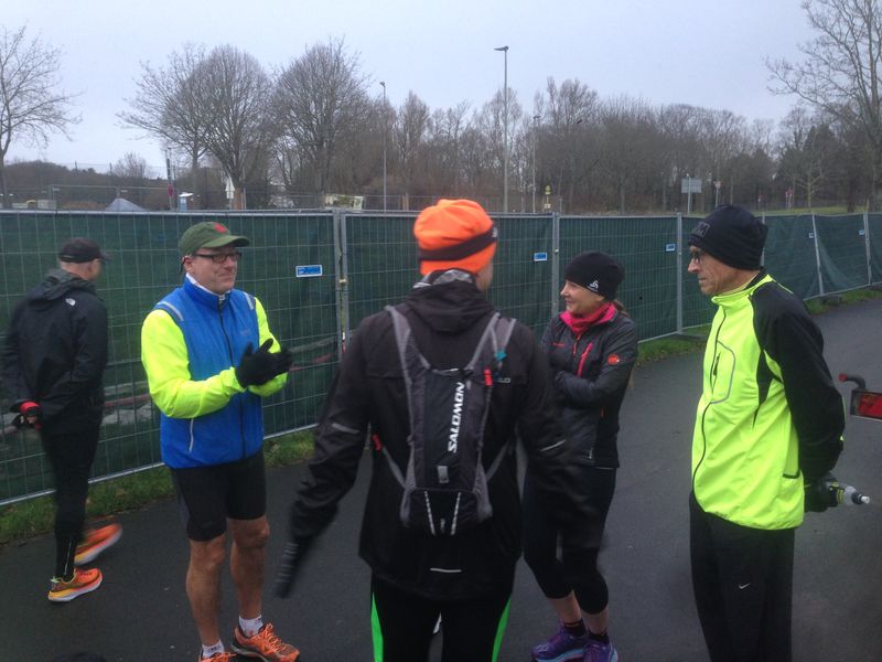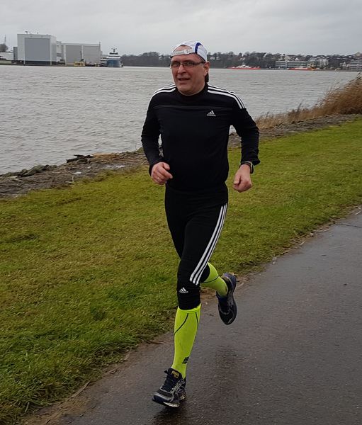 Zum Jahresabschluss ging es dann noch zu Olaf Häsler nach Bremen. Der bietet einen Marathon im Mündungsbereich der Lesum in die Weser an. Die Lesum entsteht durch den Zusammenfluss der 118 km langen Wümme mit der 48 km langen Hamme, ist selber allerdings nur 10 Kilometer lang. Bei der Lesum handelt es sich um einen rechten Nebenfluss der Weser. Treffpunkt ist am 1974 als Hochwasserschutzbauwerk fertiggestellten Lesumsperrwerk. Dort ist auch die Verpflegung aufgebaut, unter anderem mit frisch gebackenen, warmen Waffeln! Die 8,64 Kilometer lange Pendelstrecke ist 5 mal zu durchlaufen.