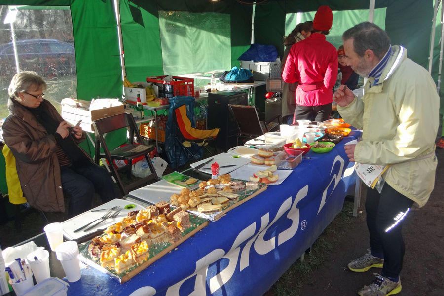 Das Wetter kann das Orgateam zwar nicht bestellen, aber es hat offensichtlich einen guten Draht zum Wettergott. Die Strecke war fast komplett ohne Matsch und Pfützen und bis auf ein paar wenige Regentropfen zu Beginn des Hauptstarts blieb es trocken. Sogar die Sonne zeigte sich die meiste Zeit, nur die Temperaturen um die 4 Grad C. waren winterlich - doch dagegen kann sich der Läufer schließlich wehren, indem er sich bewegt.