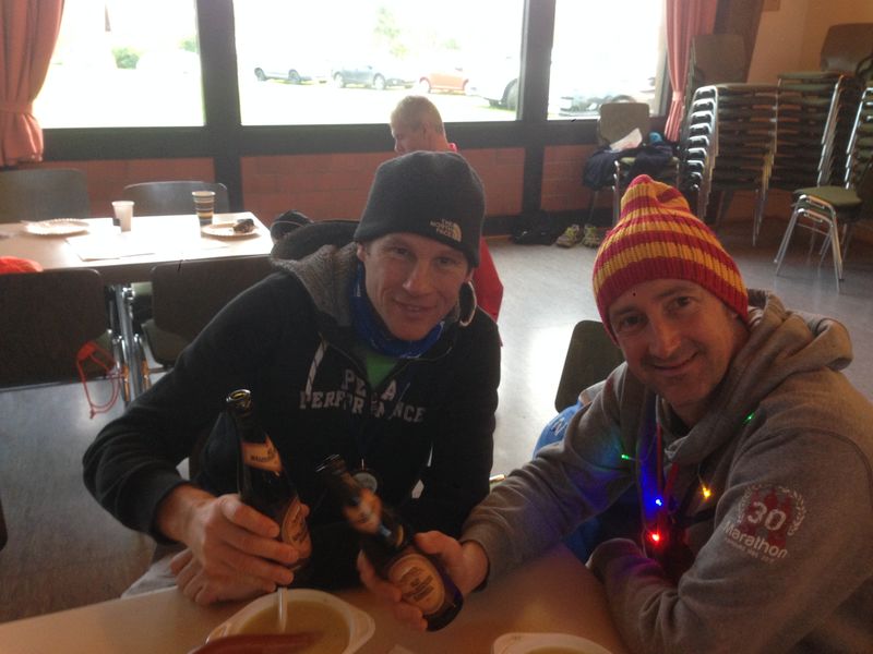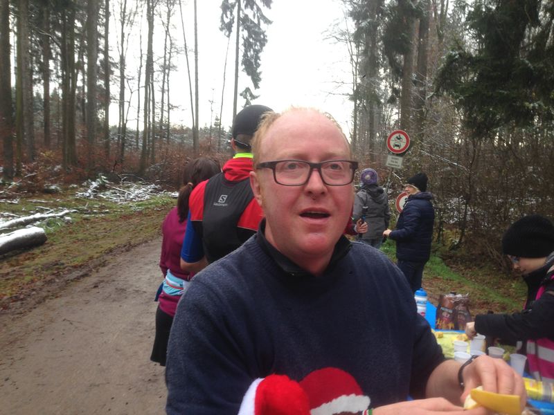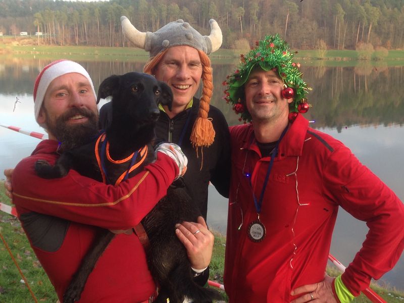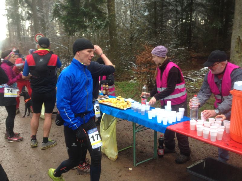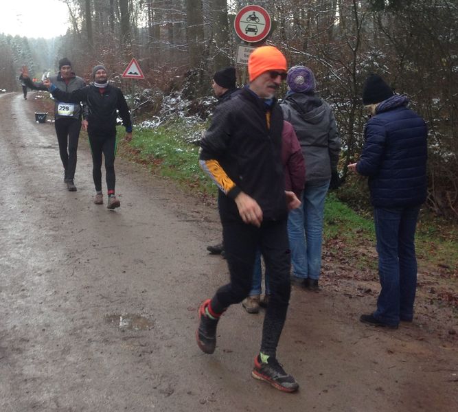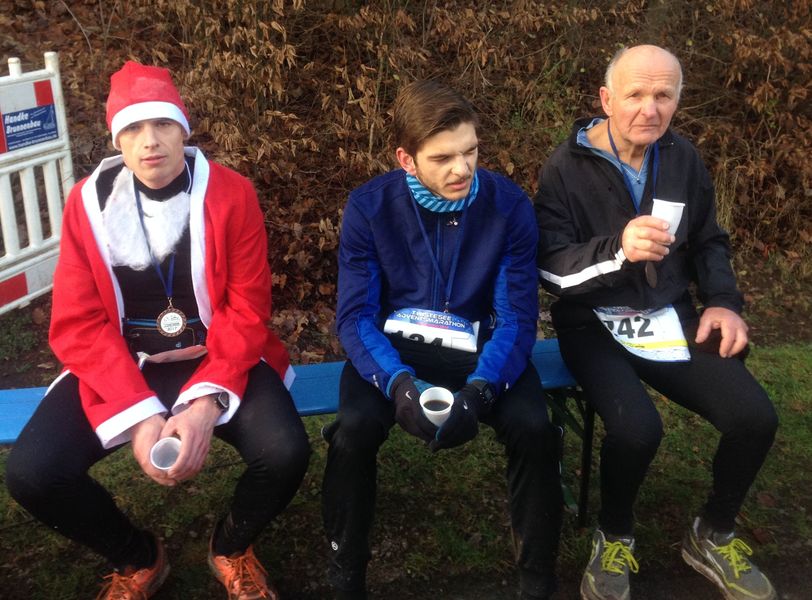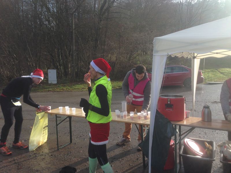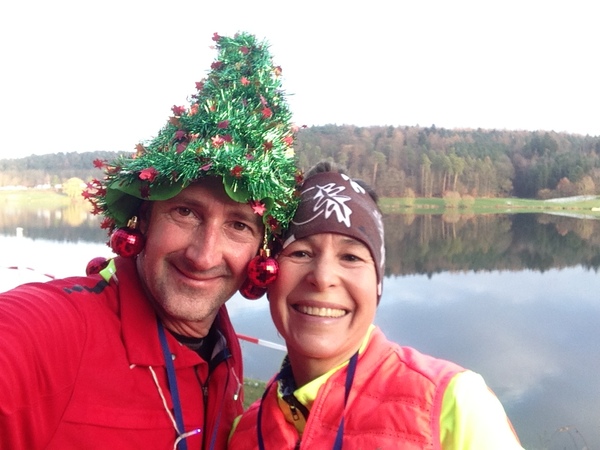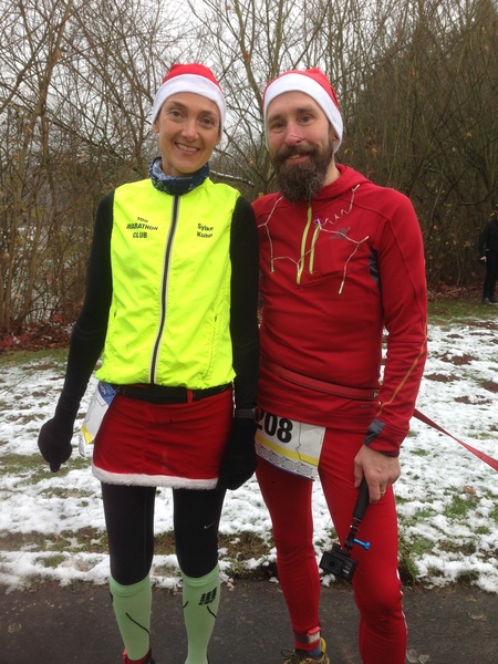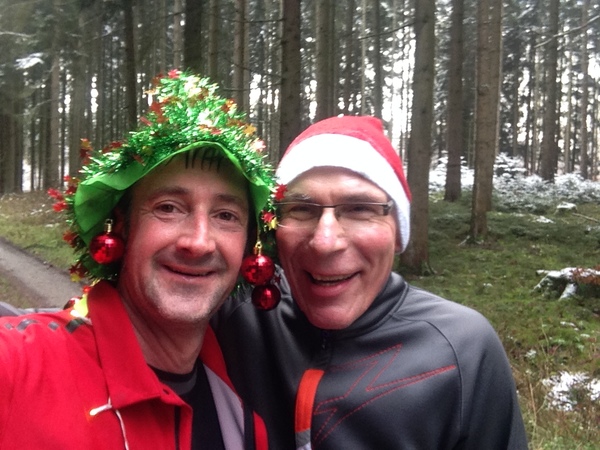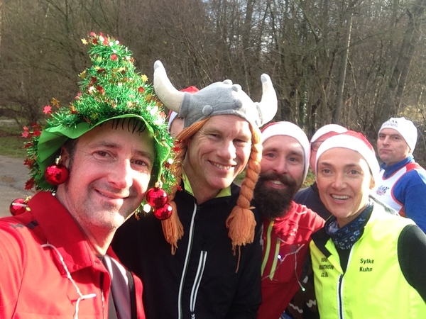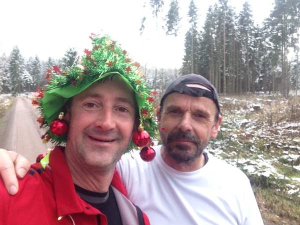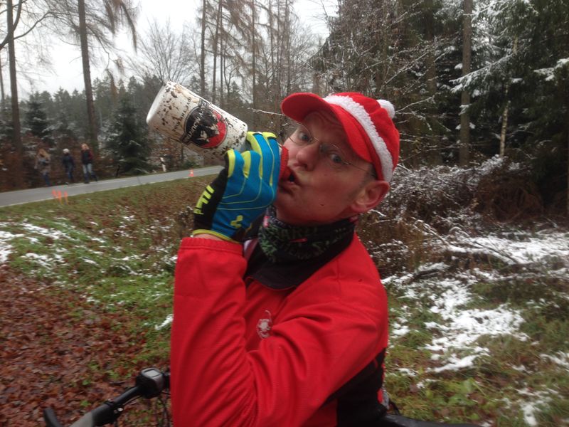 Für 28 Euro Startgeld wird eine große Runde durch den Arolser Wald geboten. Auf den ersten und letzten zwei Kilometern wird auf dem Uferpromenadenweg am Twistesee gelaufen. Dazwischen eine große Runde mit einem kleinen Begegnungsstück auf Feld-, Wald- und Wiesenwegen, die uneingeschränkt mit toller Landschaft punktet. Bei Temperaturen knapp über dem Gefrierpunkt starteten wir im Schnee, der sich in den höheren Lagen auch hält. Im Ziel ist die Weiße Pracht dann aber größtenteils schon wieder geschmolzen. Wie in vielen Jahren auch, sorgten etliche Teilnehmer mit ihrer Jahreszeit typischen Kostümierung für Heiterkeit bei Zuschauern, Helfern und Mitläufern. Verpflegungsstände versorgten alle drei bis fünf Kilometer die Läufer mit allem Notwendigen. Zum Teil auch sehr weihnachtlich mit Lebkuchen, Dominosteinen und Weihnachtsgebäck. Am letzten Verpflegungspunkt gab es dann neben selbstgebackenem Eierlikörkuchen (unglaublich lecker!!!) auch Glühwein. Ein Transponder zur elektronischen Zeitnahme wurde zur Verfügung gestellt. Als Erinnerungspräsent gab es eine mit dem Veranstaltungslogo gestaltete Tasse. Alle Finnisher erhalten im Ziel eine Medaille. Für die Sieger (Einzel und Mannschaft) und einige Helfer gab es riesige Schokoladenfiguren.